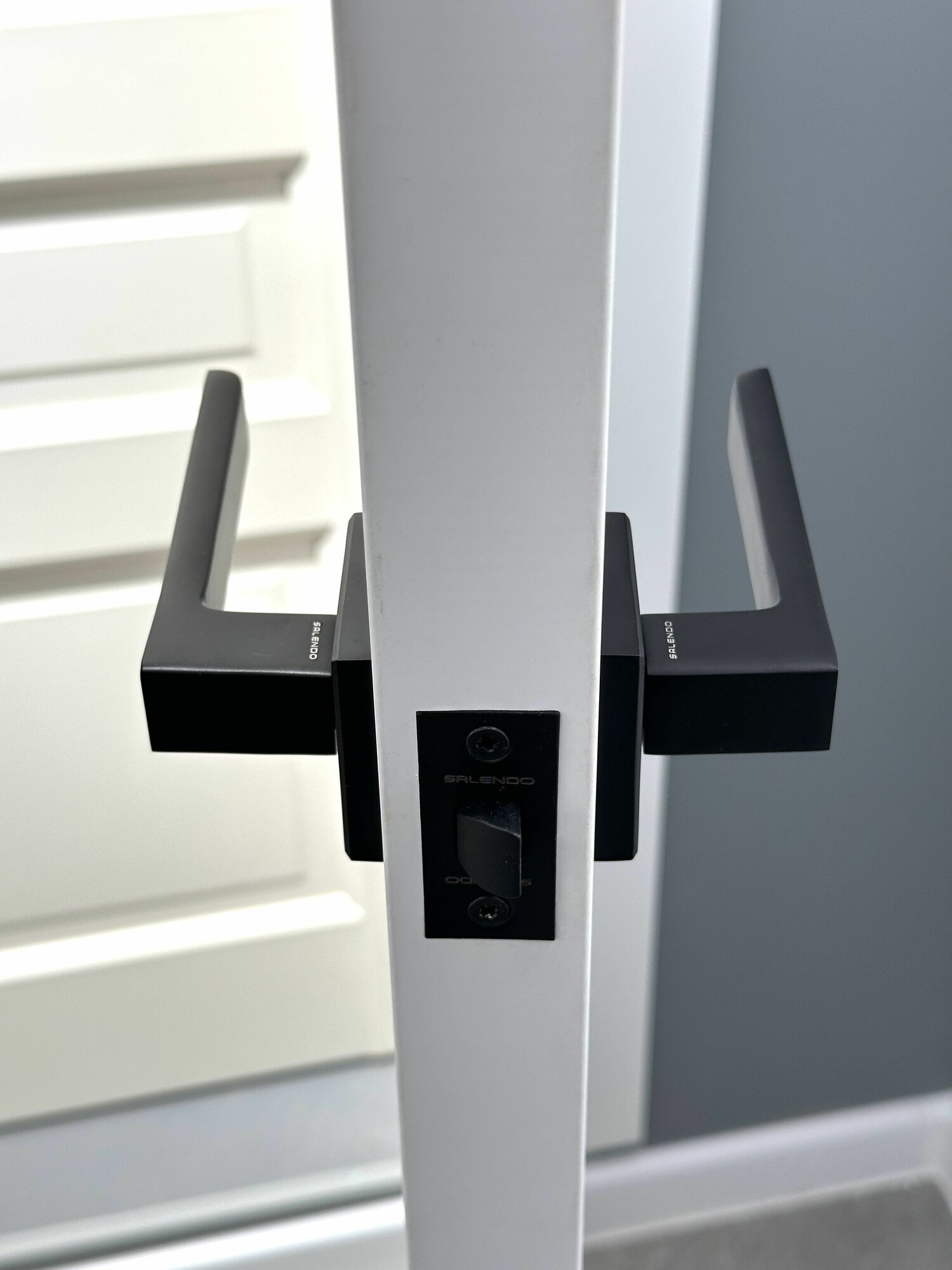 Межкомнатные дверные ручки Salendo SL-04-S BL + Замок P1885-ET BL + Накладки на личинку замка SL-ET-S BL + Личинка для замка ключ/ключ 60K/K-BL + Дверные петли SL 100X70X2,5-4BB BL _ 2 шт.