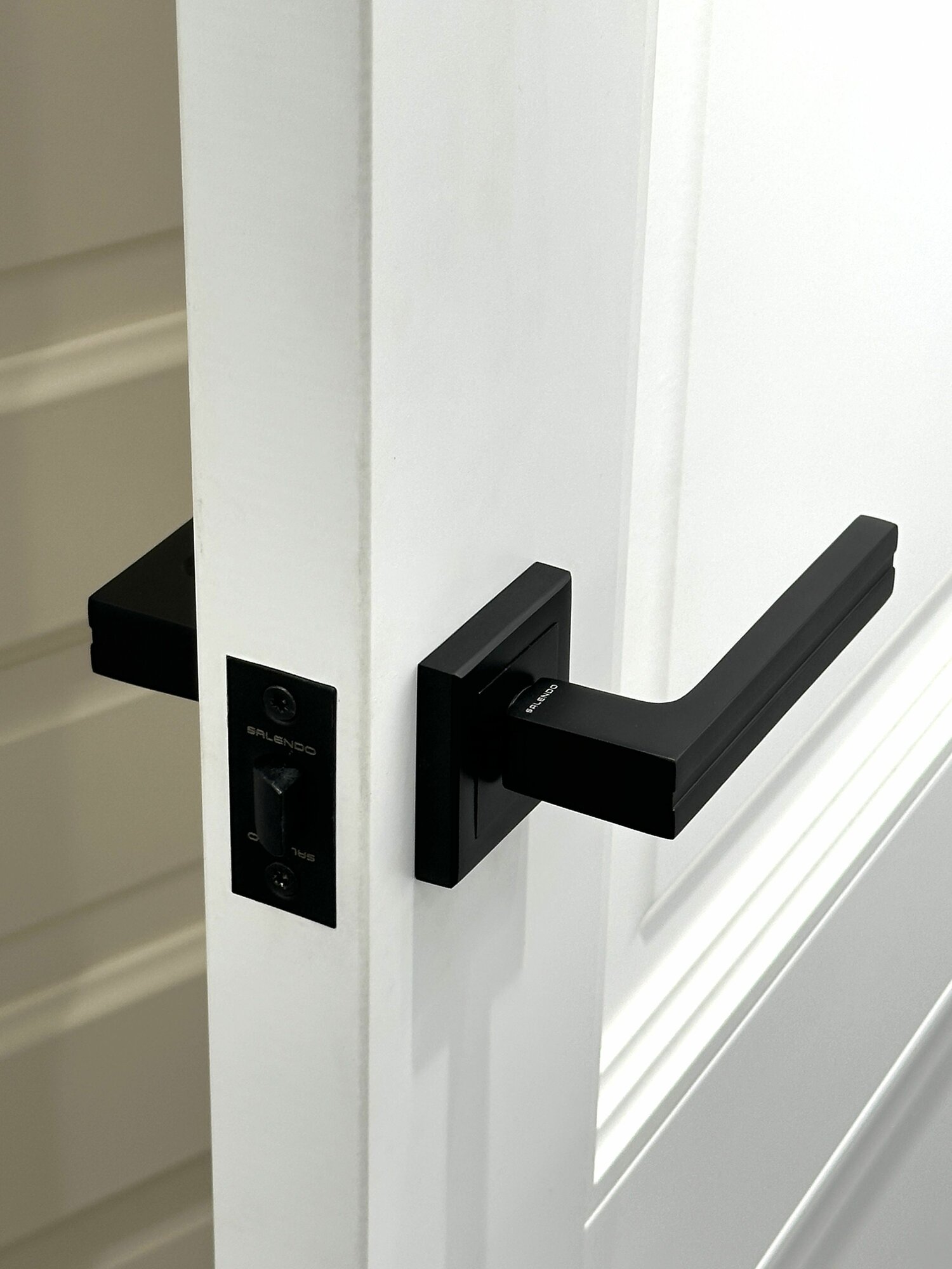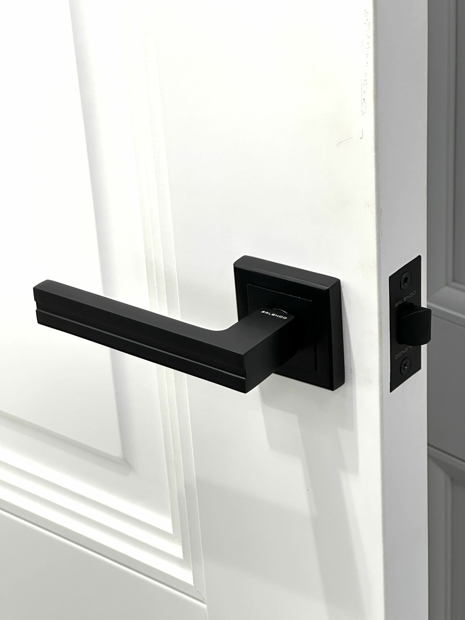 Межкомнатная дверная ручка Salendo SL-06-S BL + Магнитный замок M1885-ET BL + Накладки на личинку замка SL-ET-S BL + Личинка для замка ключ/ключ 60K/K-BL + Дверные петли SL 100X70X2,5-4BB BL _ 2 шт.
