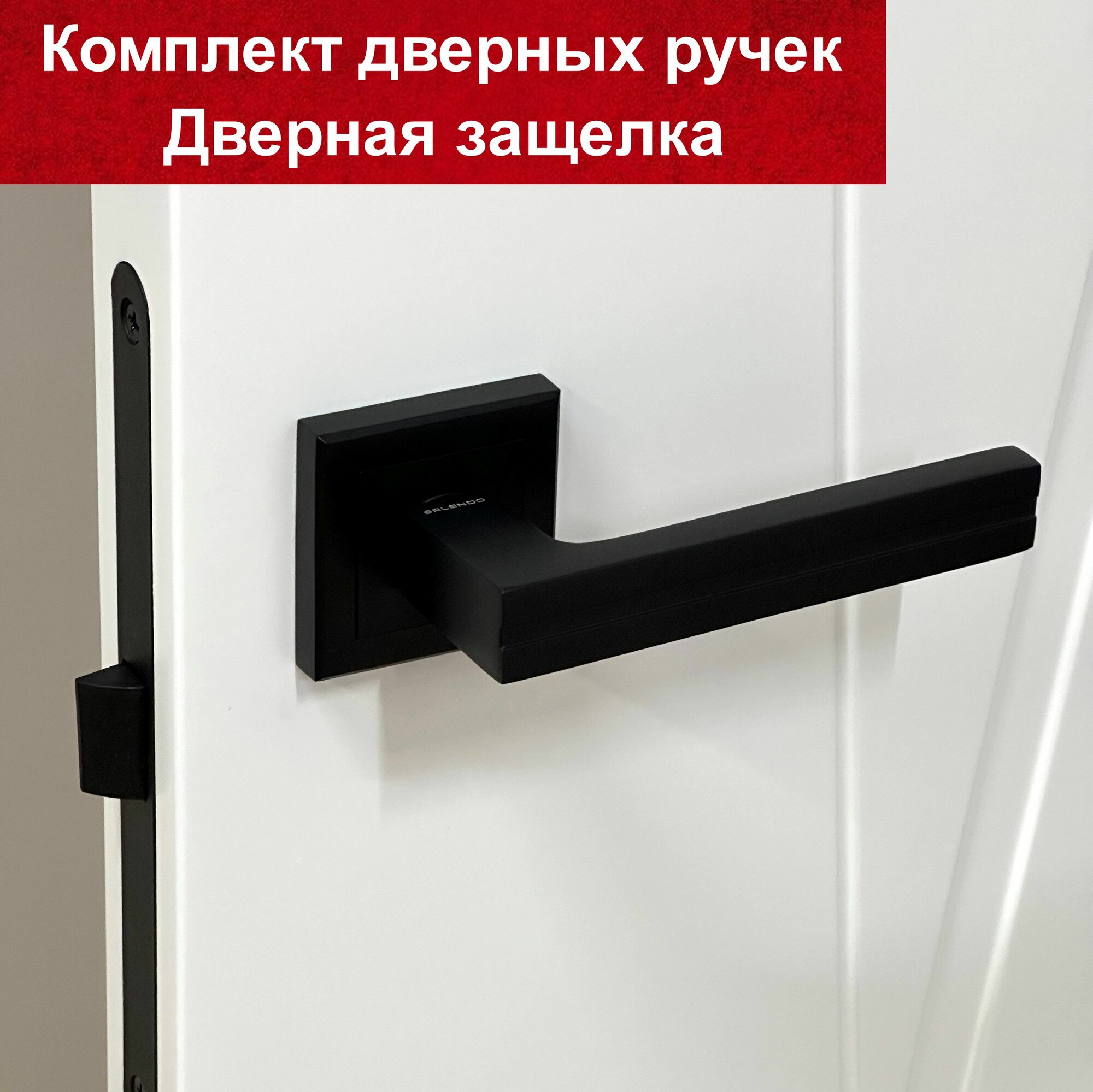 Ручка дверная межкомнатная черная SL-06-S BL + Защелка межкомнатная SLP-45 BL