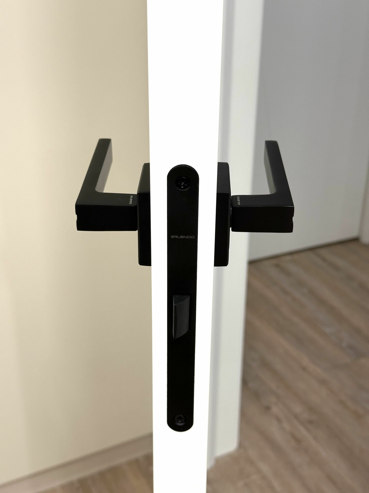 Межкомнатная дверная ручка Salendo SL-06-S BL + Магнитный замок M1885-ET BL + Накладки на личинку замка SL-ET-S BL + Личинка для замка ключ/ключ 60K/K-BL + Дверные петли SL 100X70X2,5-4BB BL _ 2 шт.