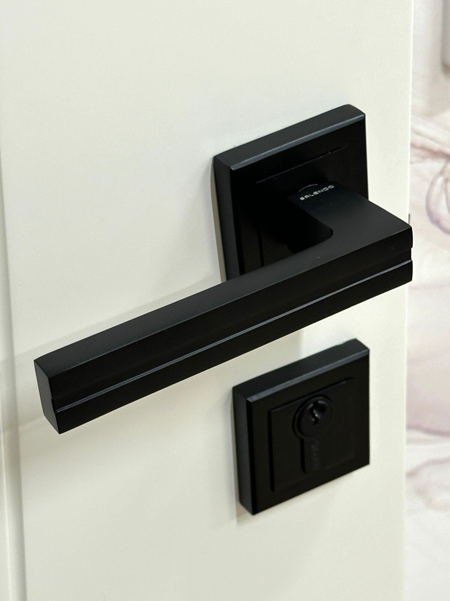 Межкомнатная дверная ручка Salendo SL-06-S BL + Замок P1885-ET BL + Накладки на личинку замка SL-ET-S BL + Личинка для замка ключ/ключ 60K/K-BL + Дверные петли бабочки SL 100X75X2,5-2BB BL _ 2 шт.