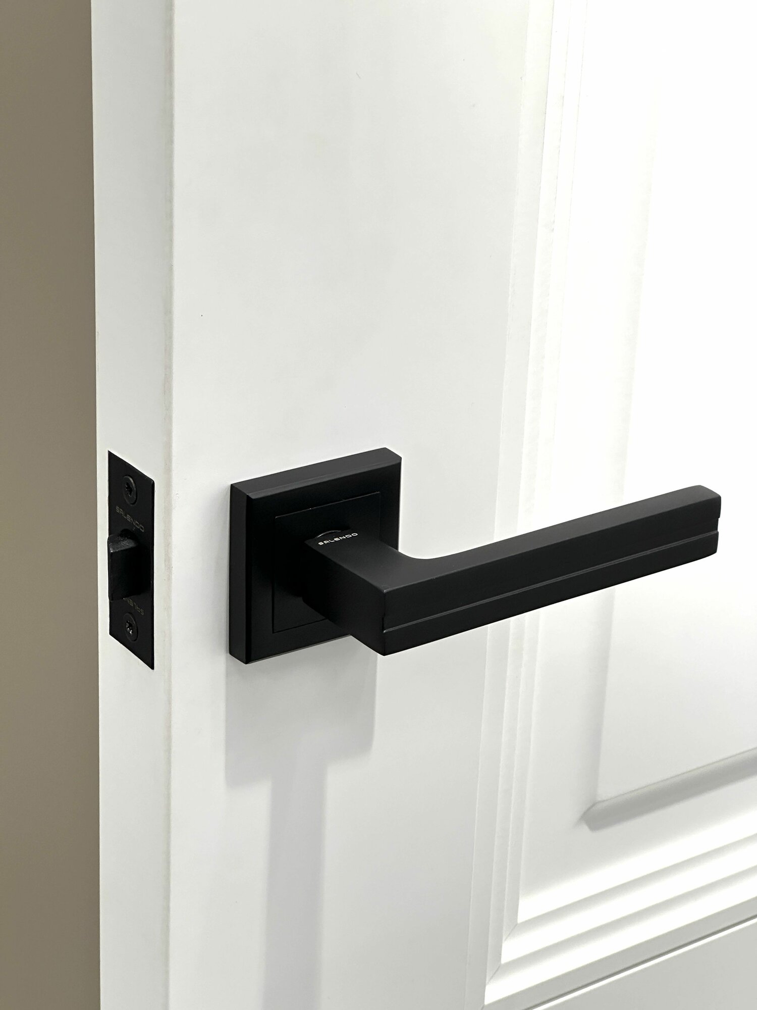 Ручка дверная межкомнатная черная SL-06-S BL + Защелка дверная P1896-WC BL