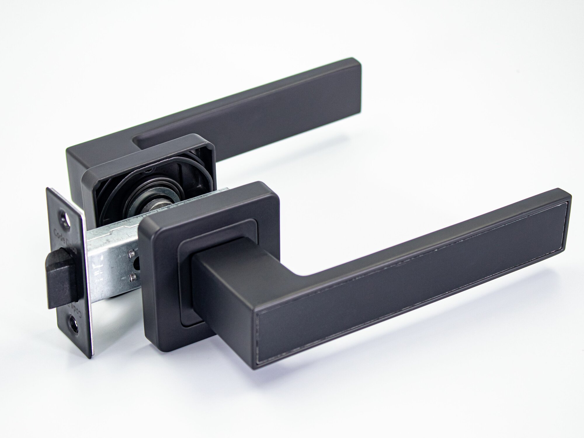 Готовый комплект 2в1 ручка дверная межкомнатная CODE DECO 22111 Черный матовый + защелка без фиксации