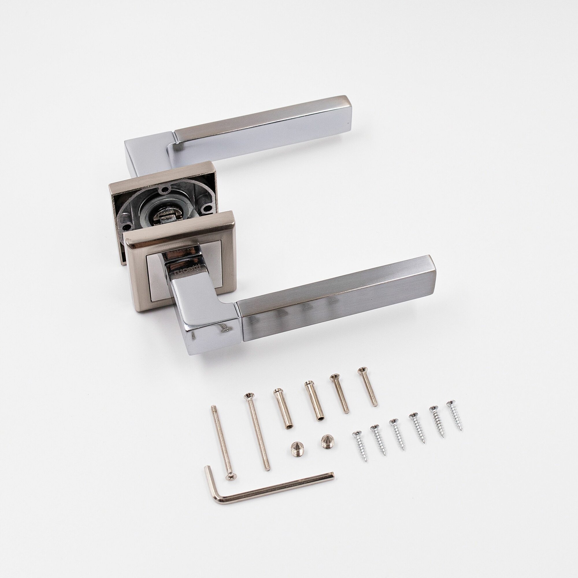 Дверная ручка на квадратной розетке RUCETTI RAP 16-S матовый хром + хром