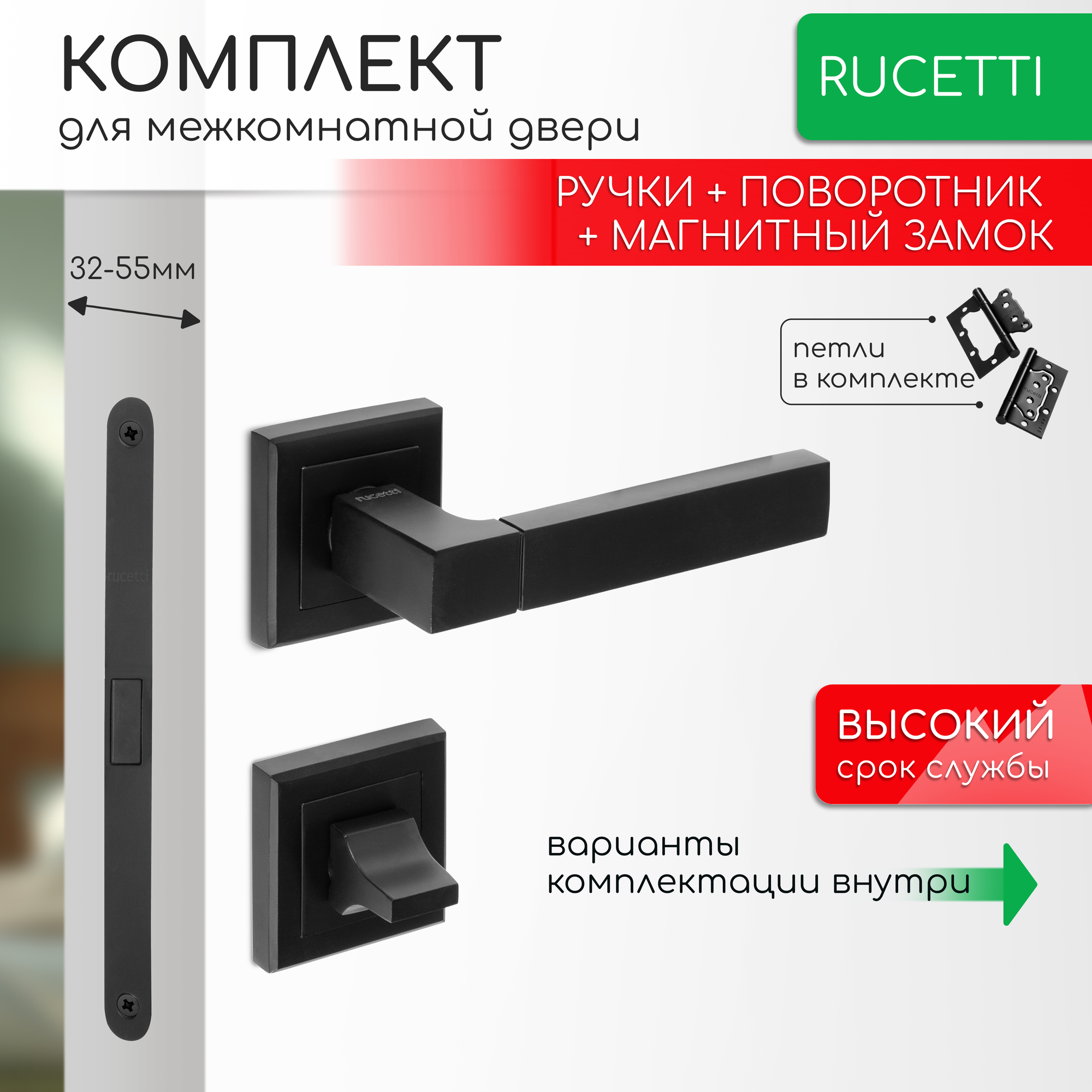 Купить Комплект для межкомнатной двери Rucetti ручки RAP 16 S BL + фиксатор + магнитный замок + петли бабочки / черный матовый