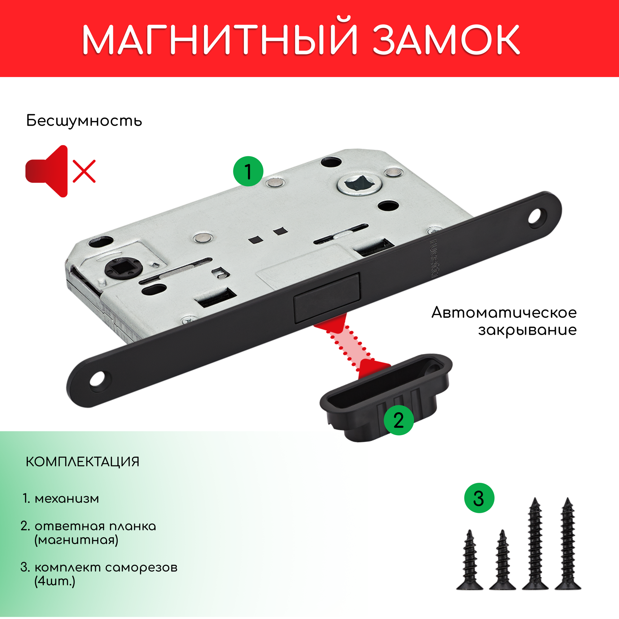 Комплект для межкомнатной двери Rucetti ручки RAP 16 S BL + магнитный замок / черный матовый