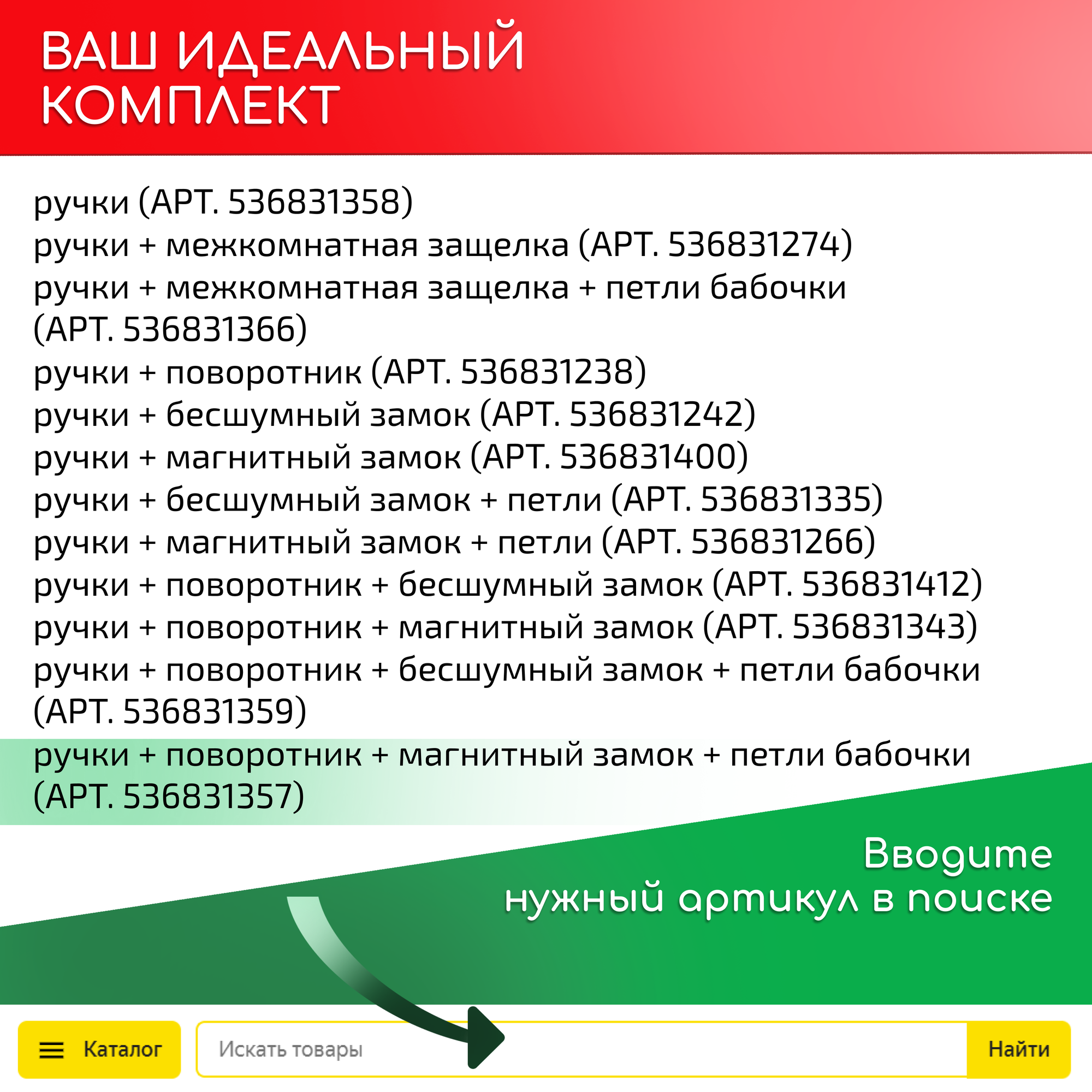 Ниже Вы можете прочитать отзывы на Комплект для межкомнатной двери Rucetti ручки RAP 16 S BL + фиксатор + магнитный замок + петли бабочки / черный матовый, ознакомится с подробными характеристиками, посмотреть интересные обзоры и фотографии на Комплект для межкомнатной двери Rucetti ручки RAP 16 S BL + фиксатор + магнитный замок + петли бабочки / черный матовый.
