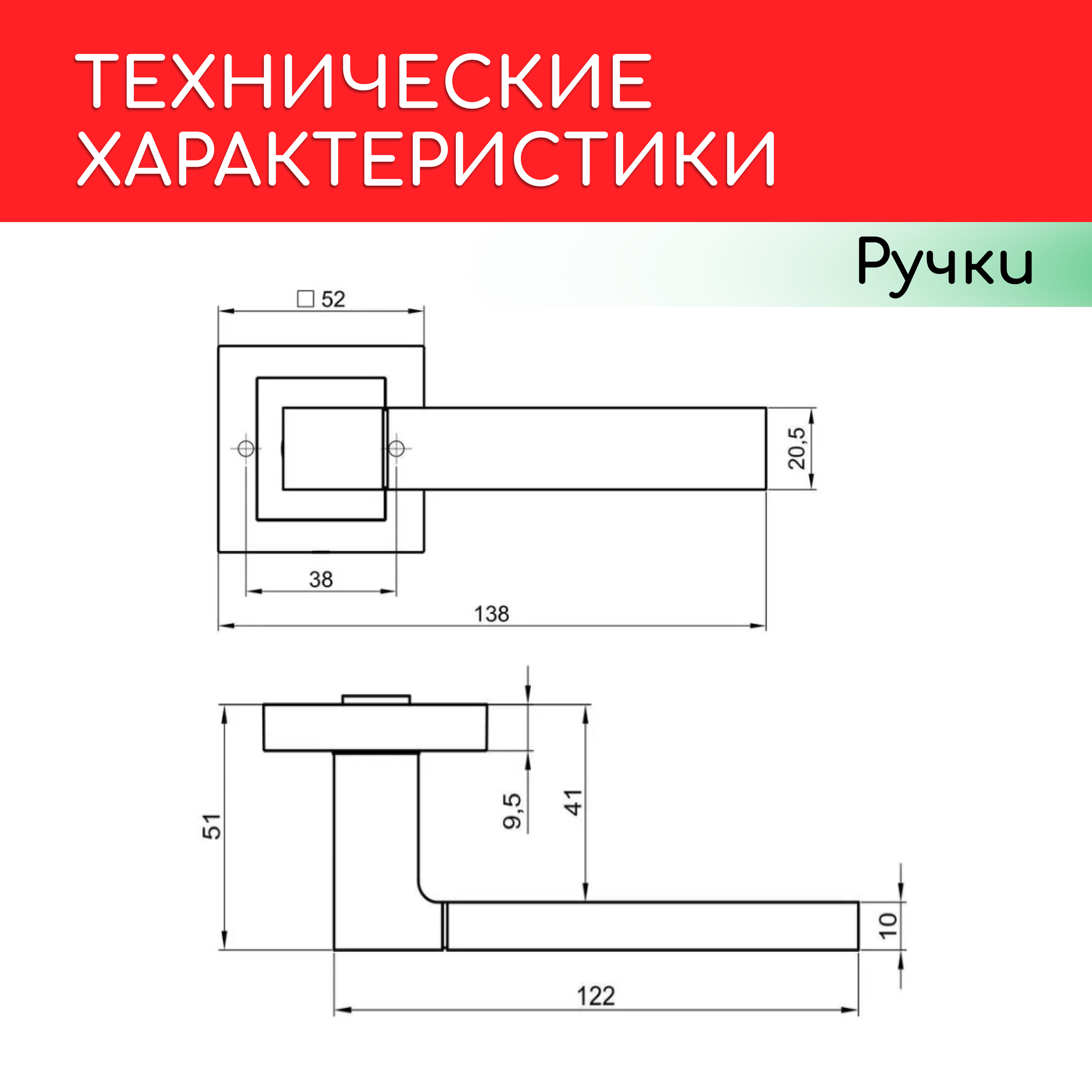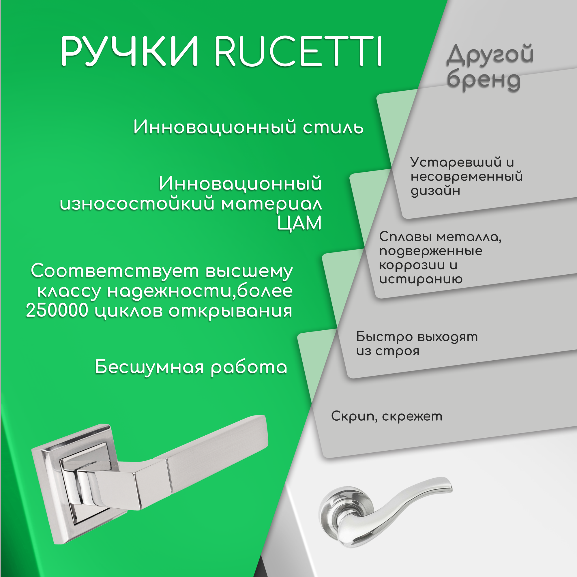 Дверная ручка на квадратной розетке RUCETTI RAP 16-S матовый хром + хром
