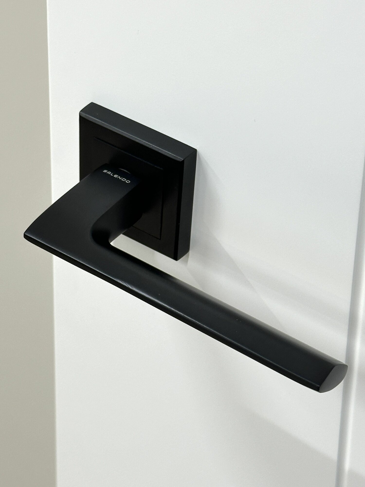 Межкомнатная дверная ручка Salendo SL-03-S BL + Магнитный замок M1885-ET BL + Накладки на личинку замка SL-ET-S BL + Личинка для замка ключ/ключ 60K/K-BL + Дверные петли SL 100X70X2,5-4BB BL _ 2 шт.