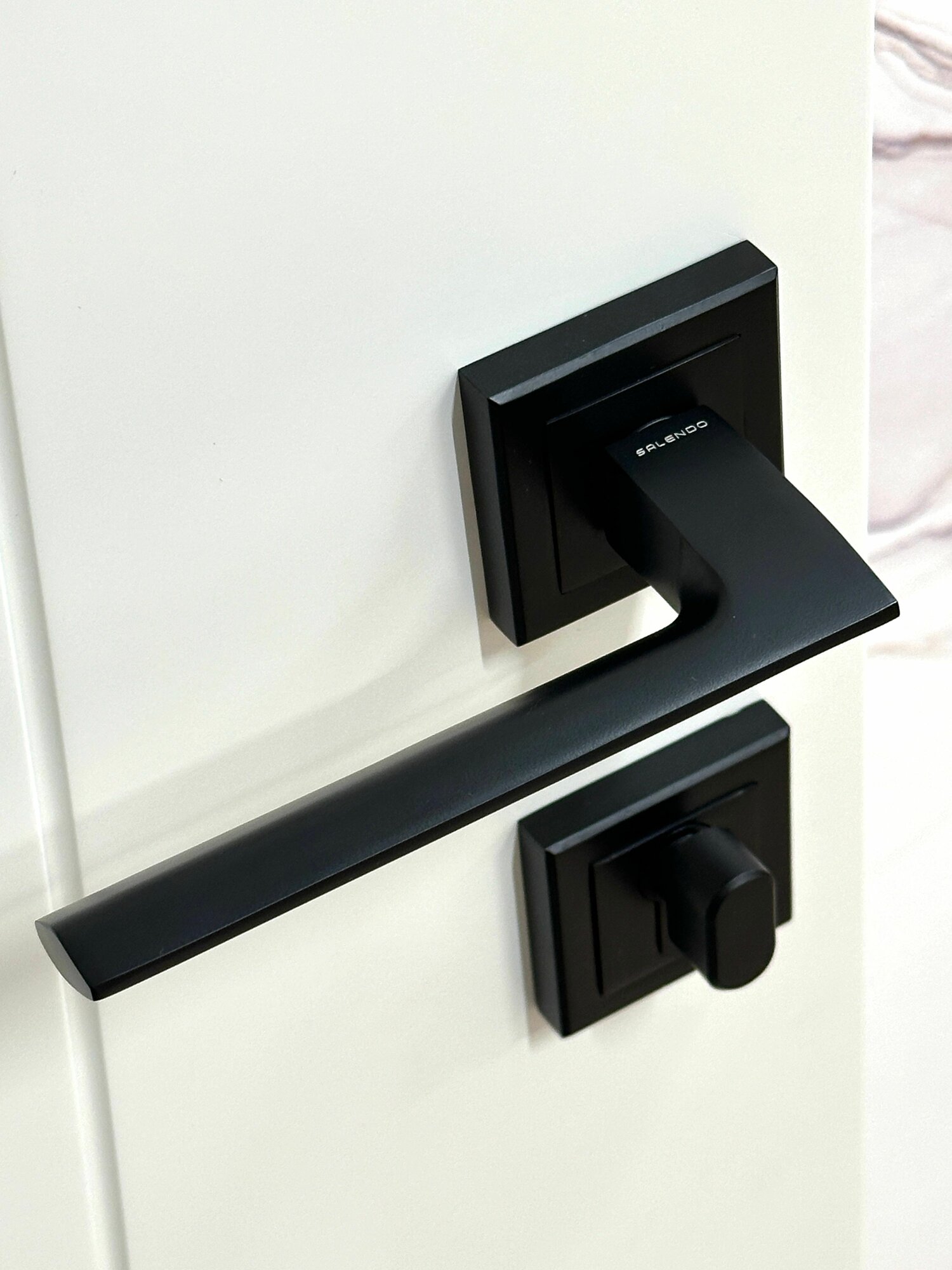 Межкомнатные дверные ручки Salendo SL-03-S BL + Замок P1885-ET BL + Накладки на личинку замка SL-ET-S BL + Личинка для замка ключ/ключ 60K/K-BL + Дверные петли SL 100X70X2,5-4BB BL _ 2 шт.