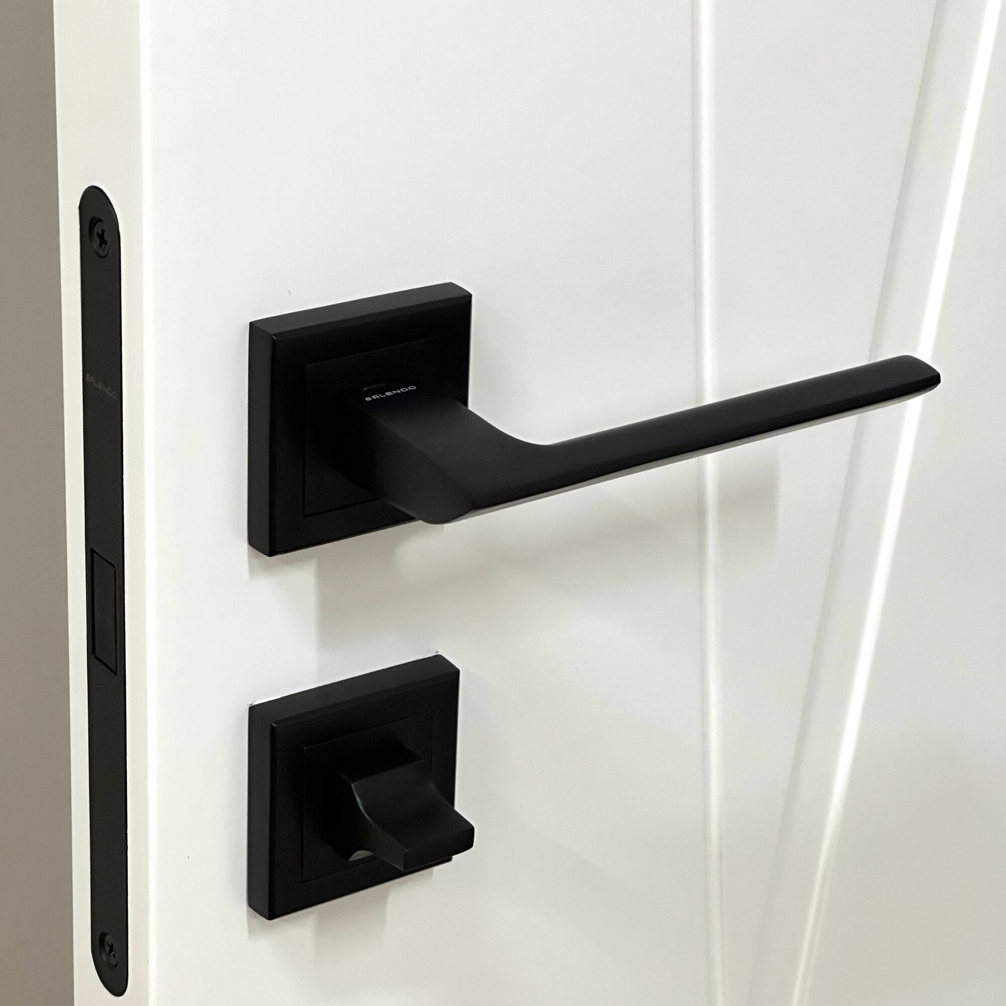 Межкомнатная дверная ручка Salendo SL-03-S BL + Магнитный замок M1885-ET BL + Накладки на личинку замка SL-ET-S BL + Личинка для замка ключ/ключ 60K/K-BL + Дверные петли SL 100X70X2,5-4BB BL _ 2 шт.