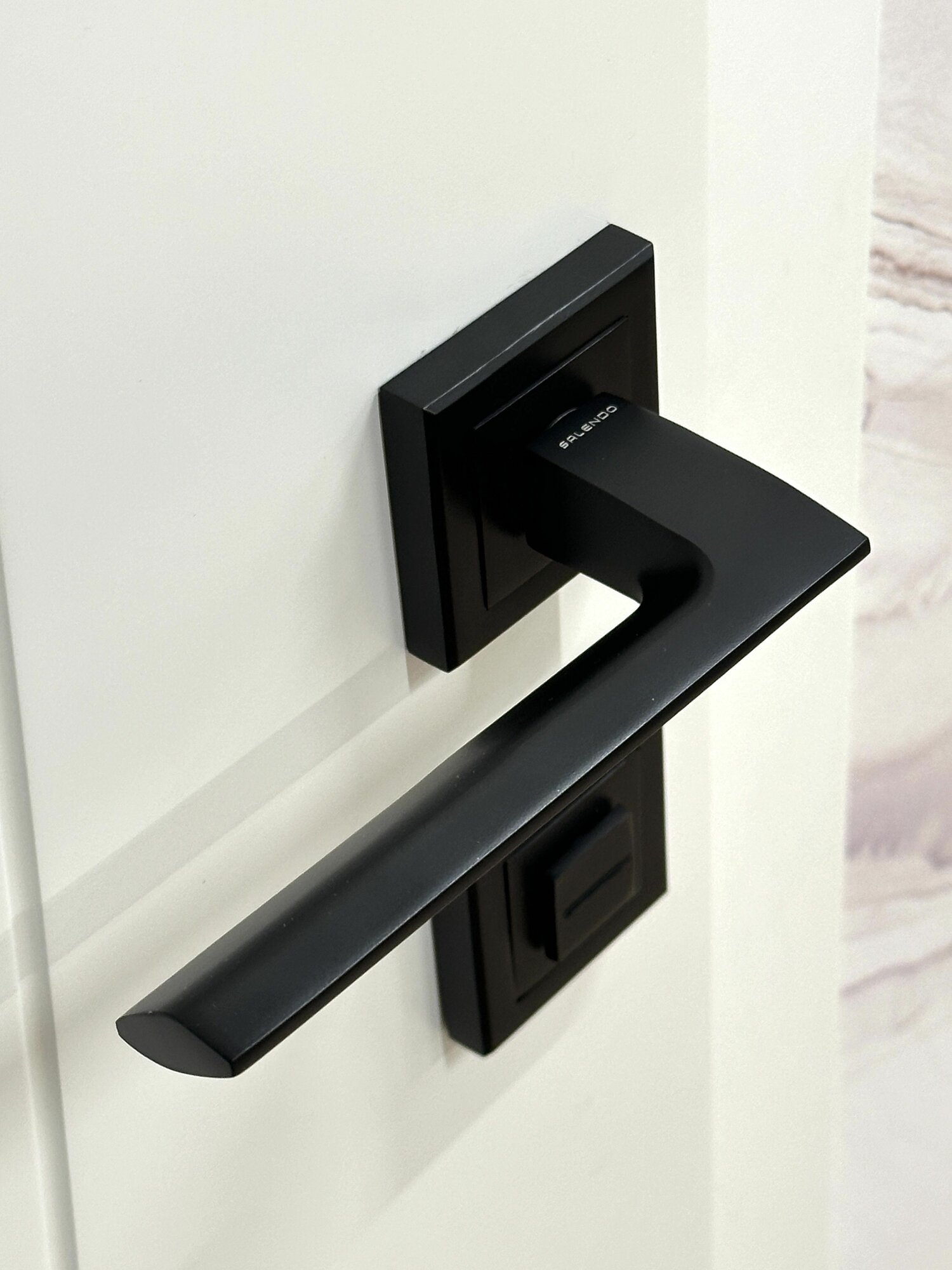 Межкомнатные дверные ручки Salendo SL-03-S BL + Замок P1885-ET BL + Накладки на личинку замка SL-ET-S BL + Личинка для замка ключ/ключ 60K/K-BL + Дверные петли SL 100X70X2,5-4BB BL _ 2 шт.