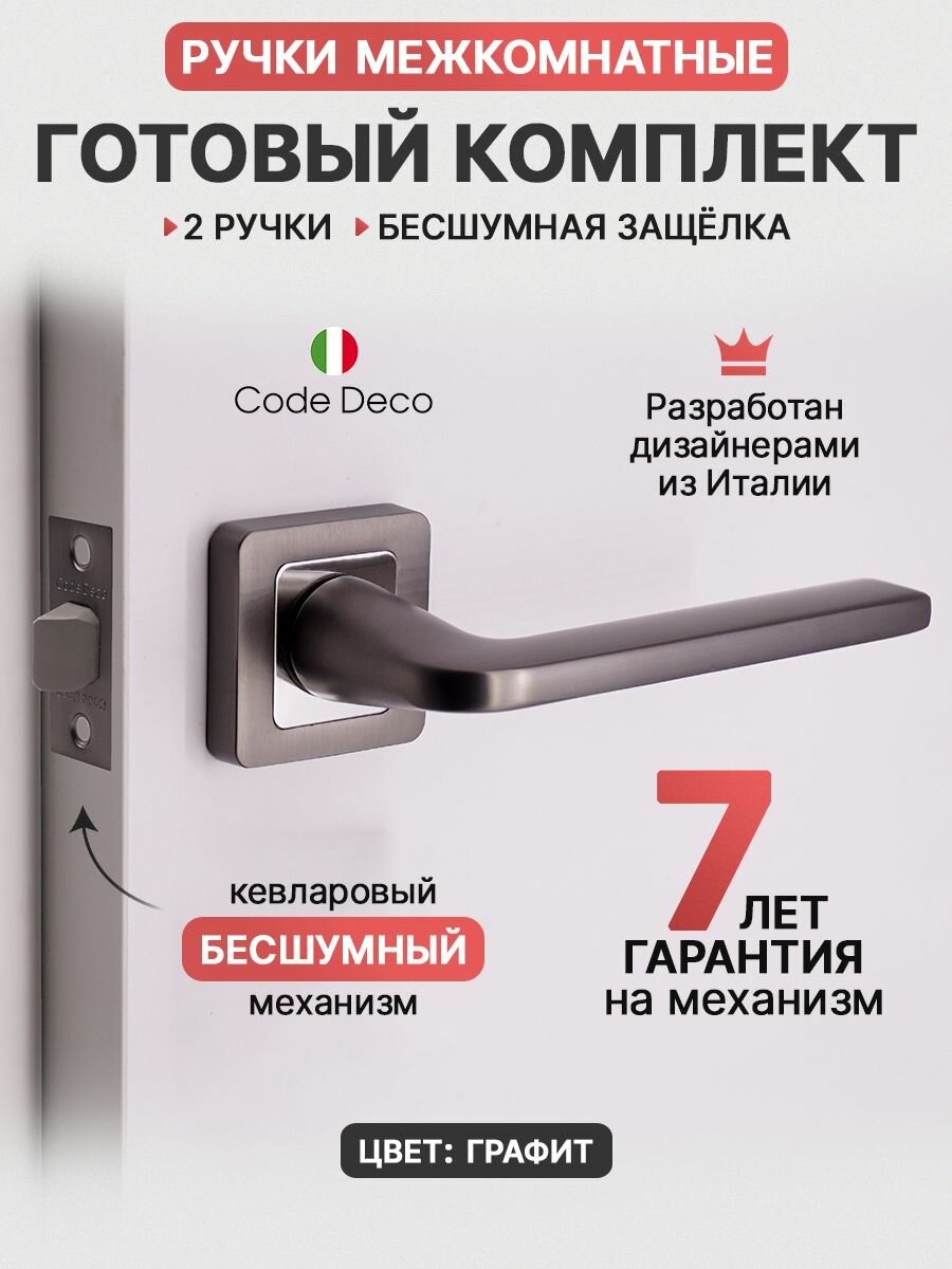 Купить Готовый комплект 2в1 ручка дверная межкомнатная CODE DECO 22112 Графит + защелка без фиксации