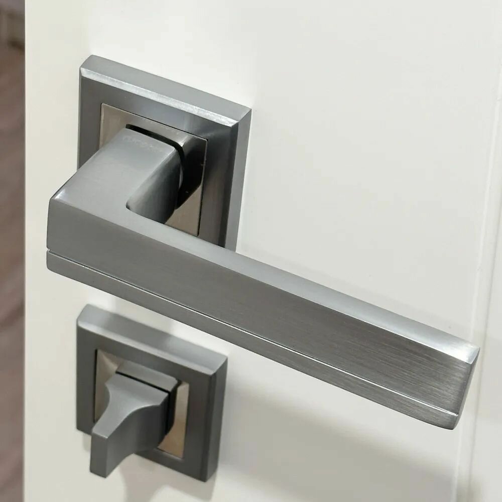 Ручка дверная Rucetti (Ручетти) RAP 22-S SC/CP + Магнитный замок RM1895 SC + Фиксатор RAP WC-S SC/CP / Межкомнатные дверные ручки, магнитная защелка, Завертка сантехническая