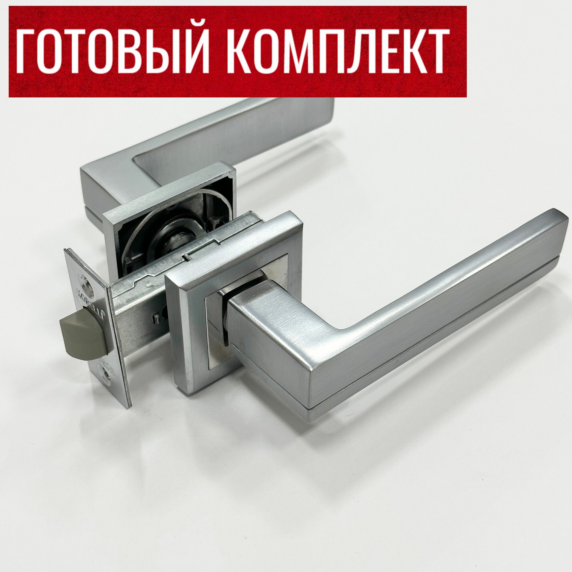 Ручка дверная Rucetti (Ручетти) RAP 22-S SC/CP + Магнитный замок RM1895 SC + Фиксатор RAP WC-S SC/CP / Межкомнатные дверные ручки, магнитная защелка, Завертка сантехническая