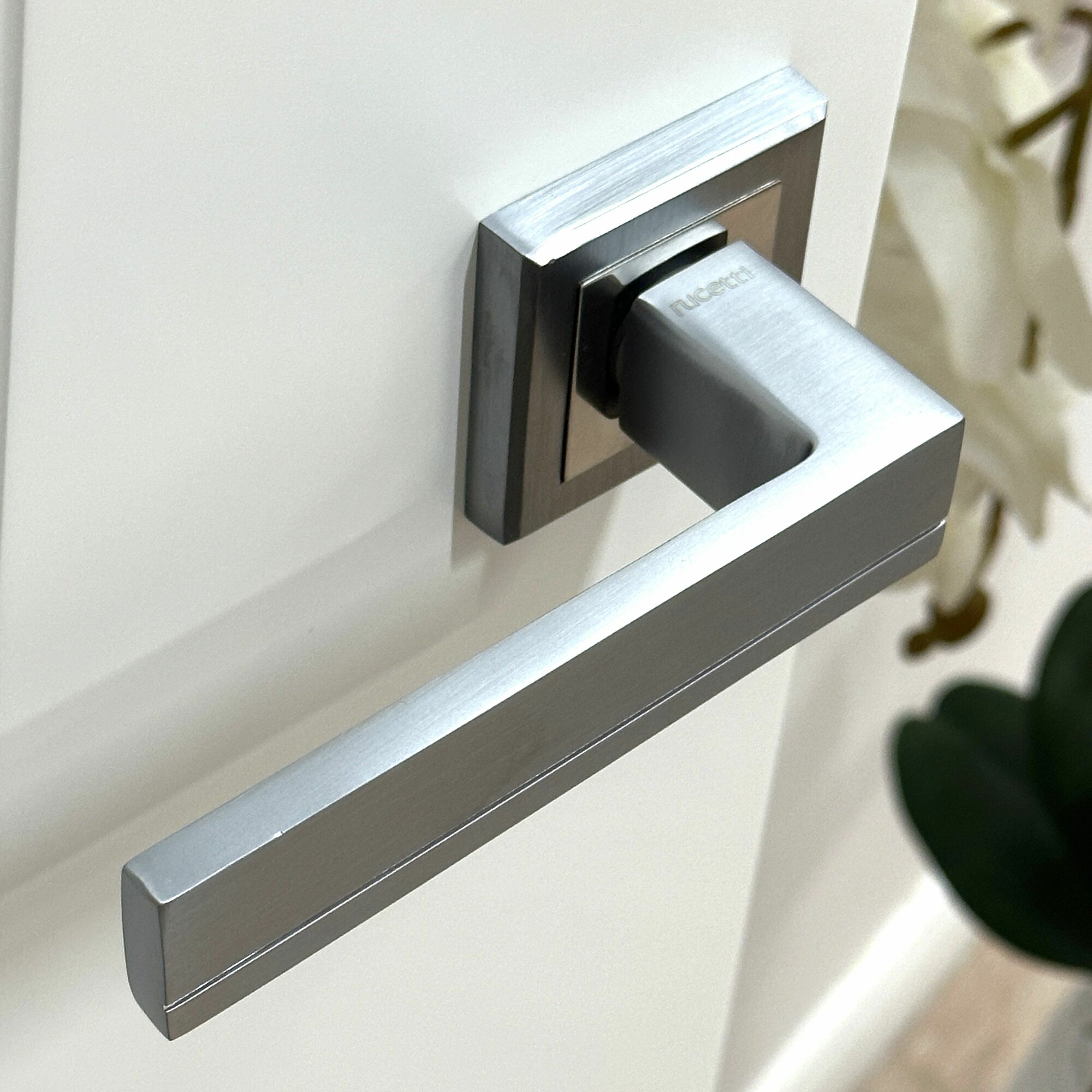 Ручка дверная Rucetti (Ручетти) RAP 22-S SC/CP + Магнитная защелка RM1895 SC / Межкомнатные дверные ручки, магнитный замок