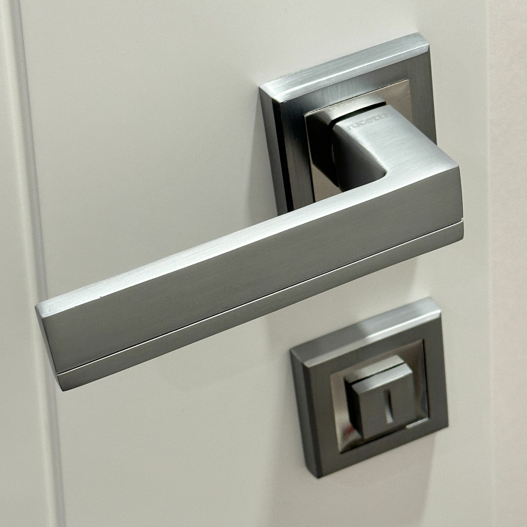 Ручка дверная Rucetti (Ручетти) RAP 22-S SC/CP + Магнитный замок RM1895 SC + Фиксатор RAP WC-S SC/CP / Межкомнатные дверные ручки, магнитная защелка, Завертка сантехническая