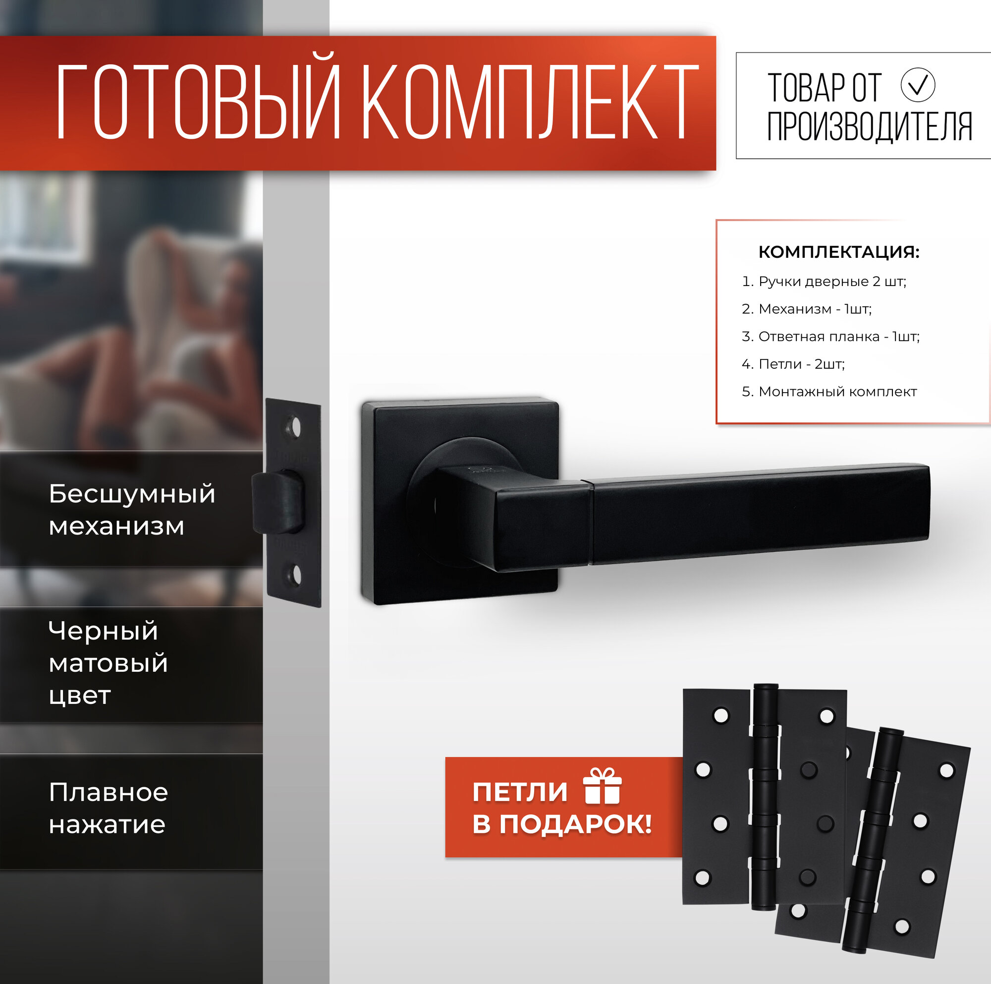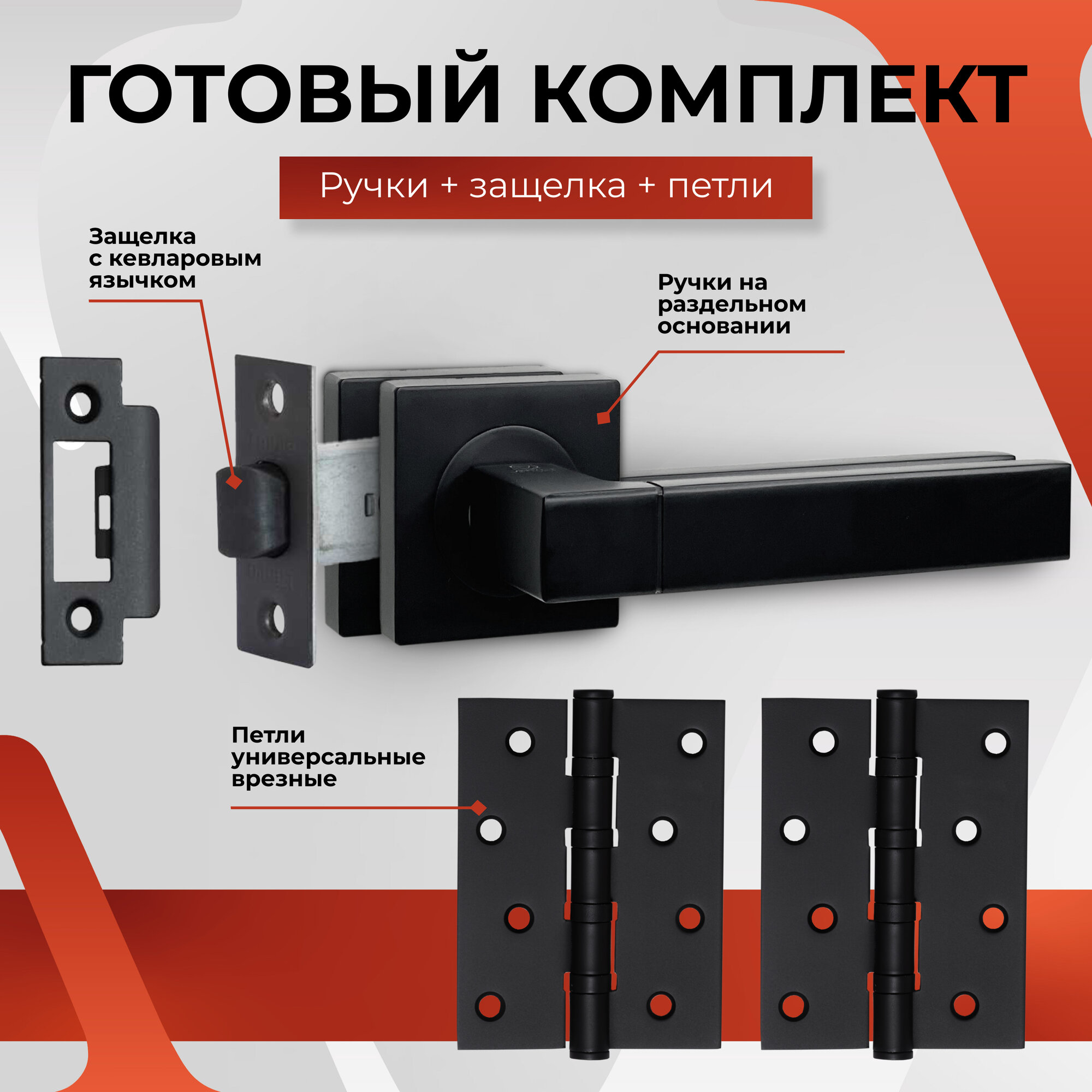 Купить Ручка дверная VETTORE R06.081 МВР с защелкой C-03B 100 KEVLAR MBP и петлями 100*75 4BB Черный Матовый