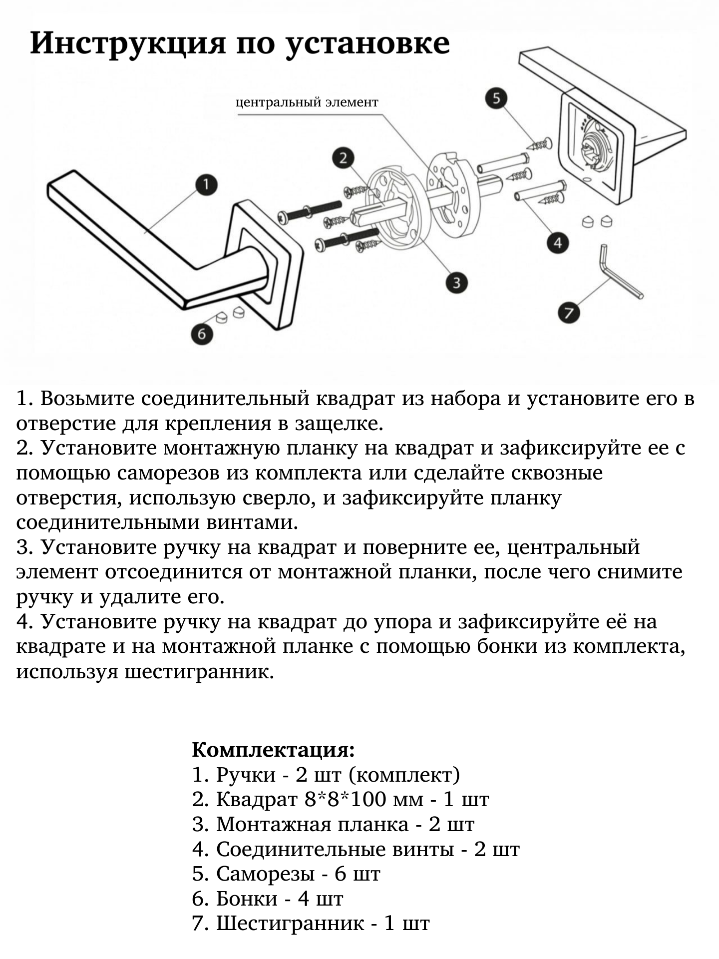 Ручка дверная межкомнатная. цвет под никель, с защелкой и заверткой без ключей, комплект