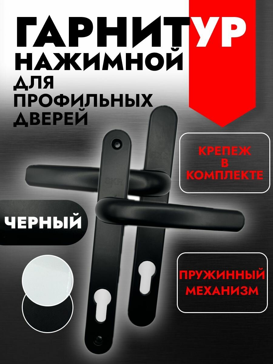 Гарнитур нажимной, ручка на планке для ПВХ, профильных дверей, цвет: черный интересное: