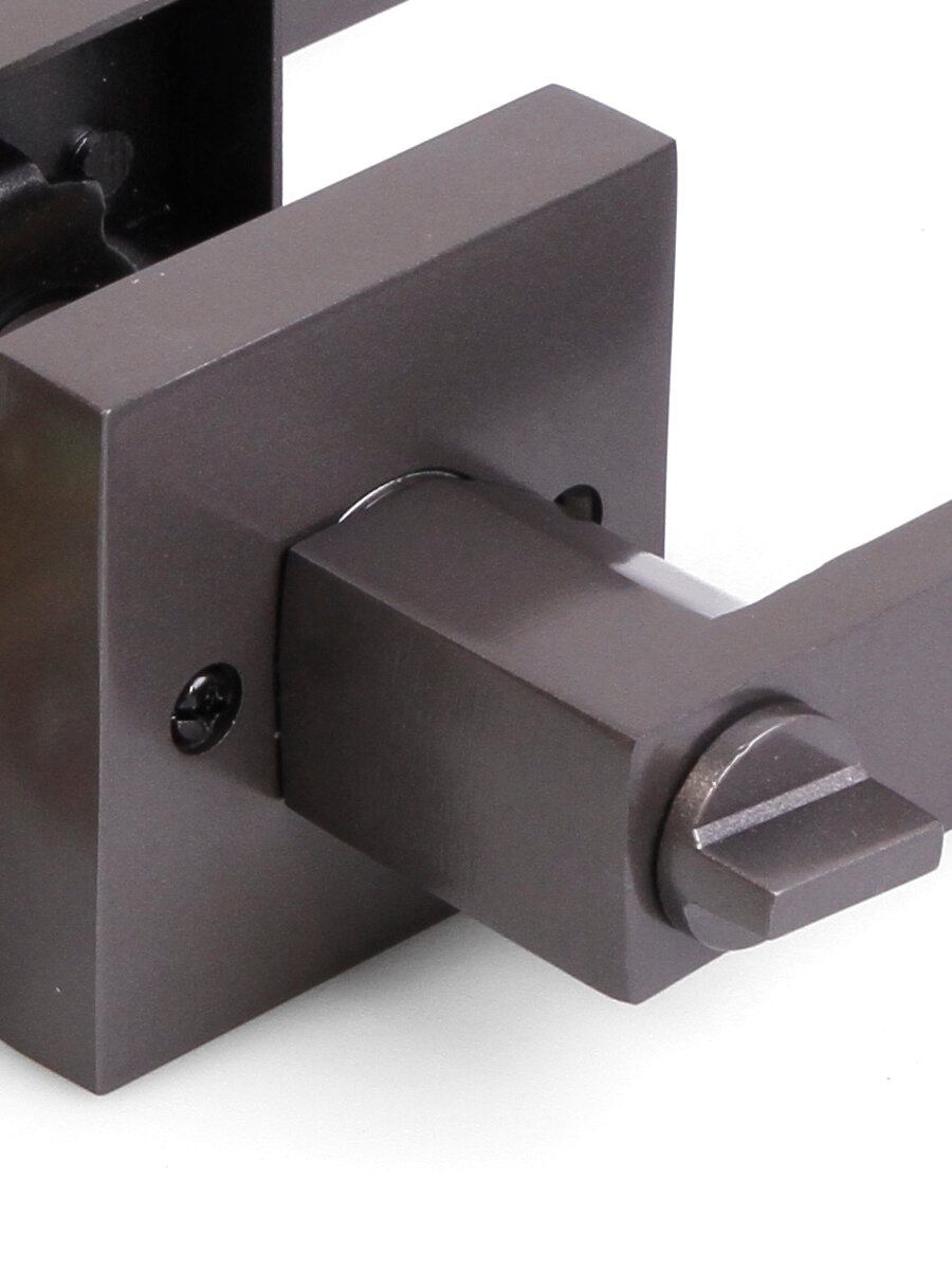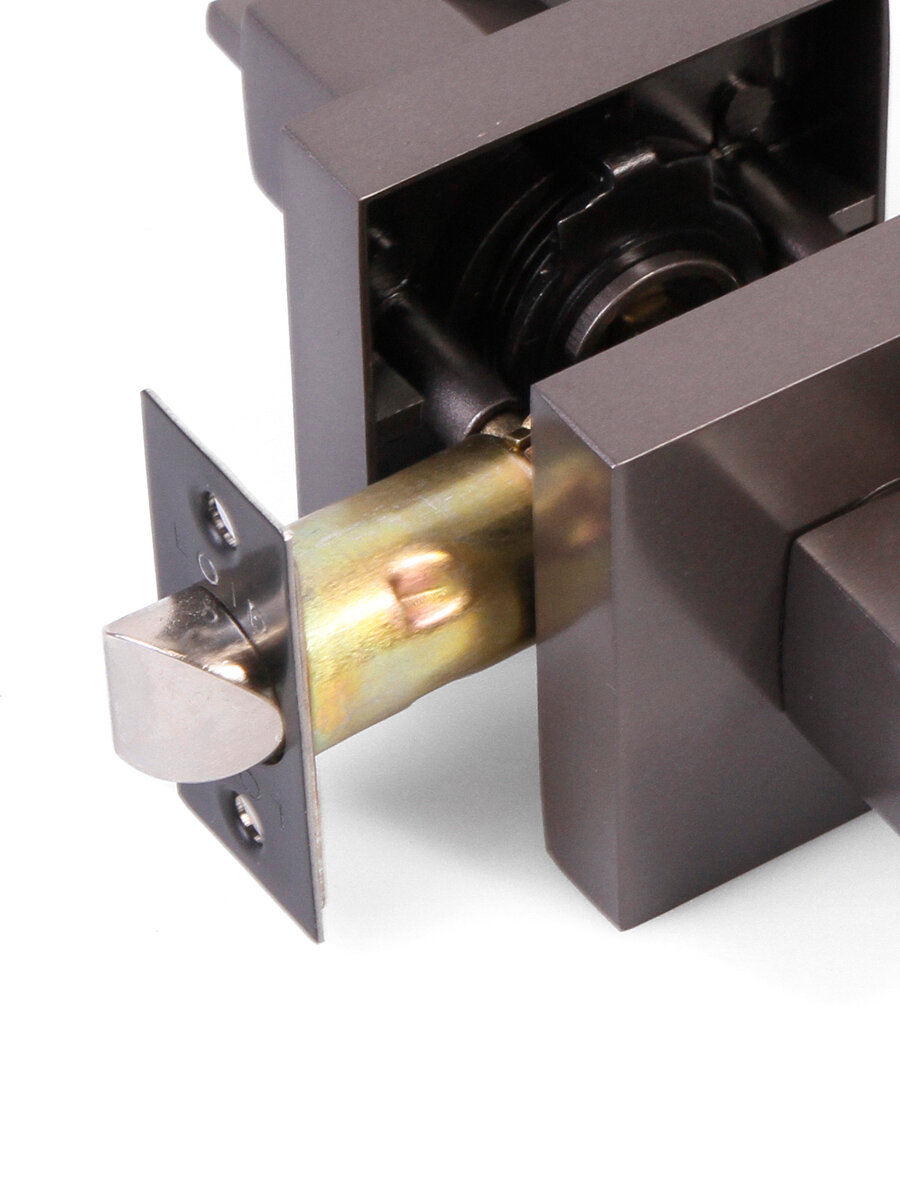 СохранитьРучка дверная межкомнатная с защелкой и фиксатором (серия Premium) Loid SQ-03 GR Графит + черный матовый интересное: