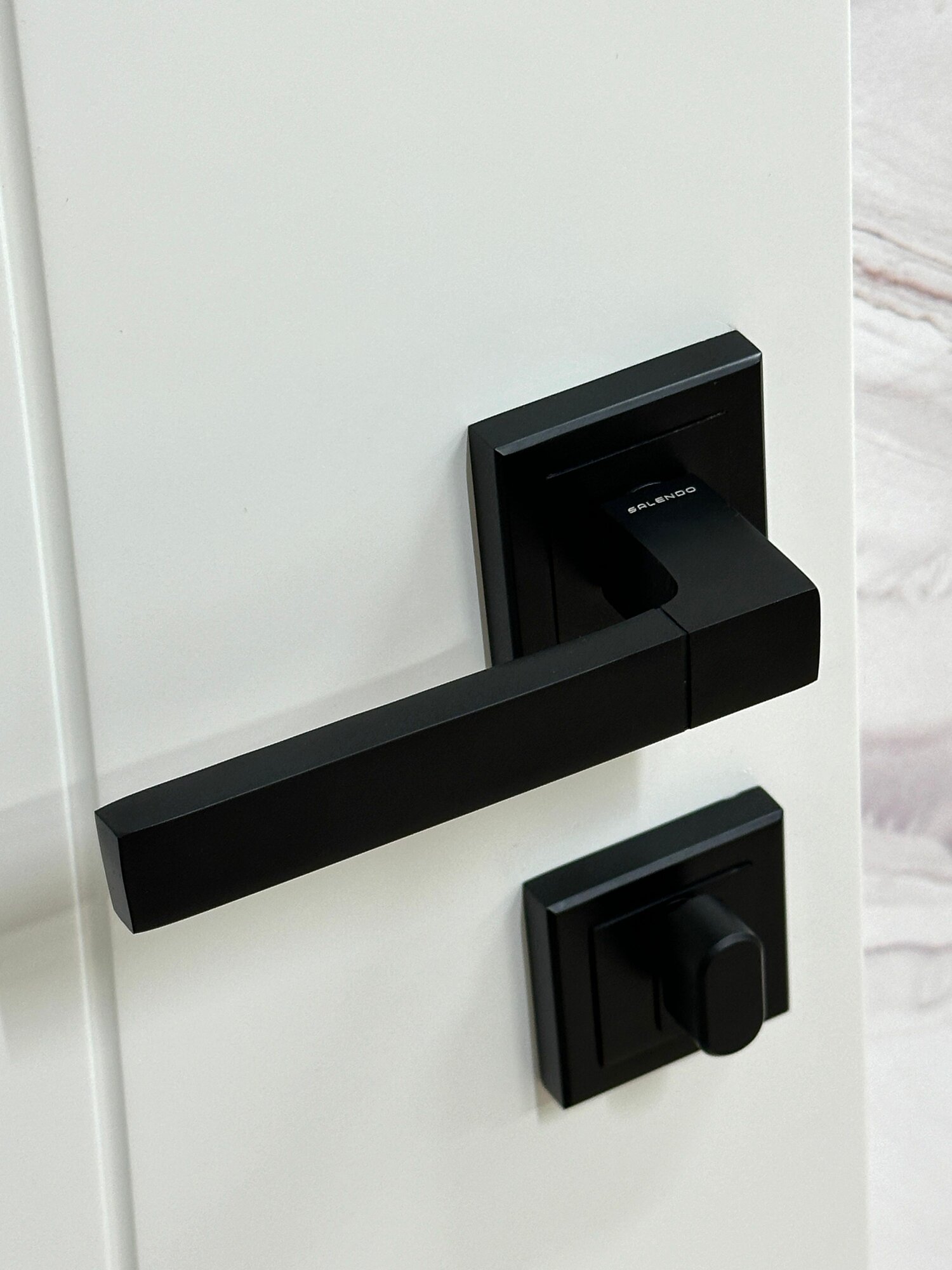 Межкомнатные дверные ручки Salendo SL-02-S BL + Замок P1885-ET BL + Накладки на личинку замка SL-ET-S BL + Личинка для замка ключ/ключ 60K/K-BL + Дверные петли SL 100X70X2,5-4BB BL _ 2 шт.