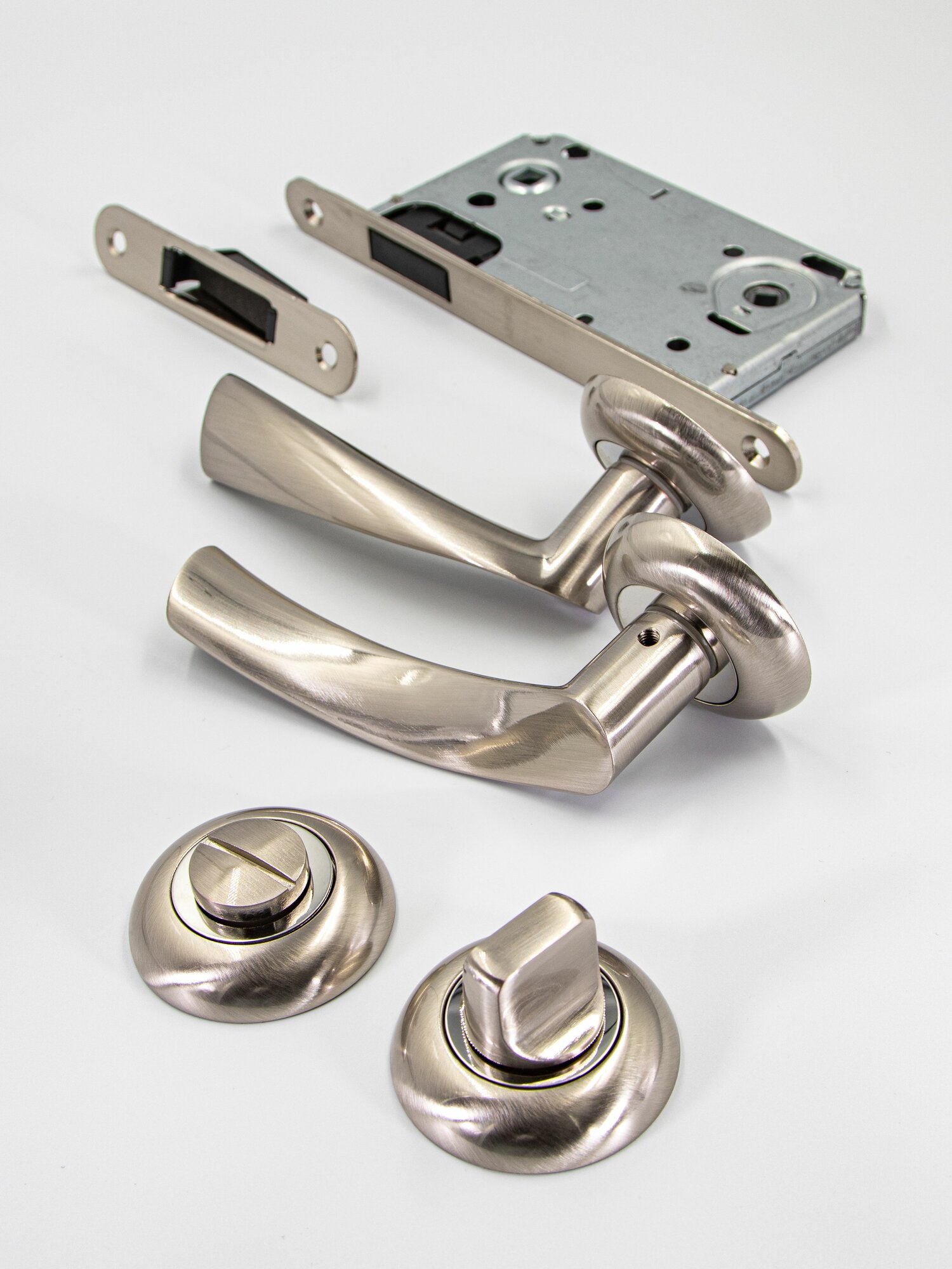 СохранитьГотовый комплект 3в1 ручка дверная межкомнатная CODE DECO 14023 Никель матовый + защелка с фиксацией + WC-фиксатор интересное: