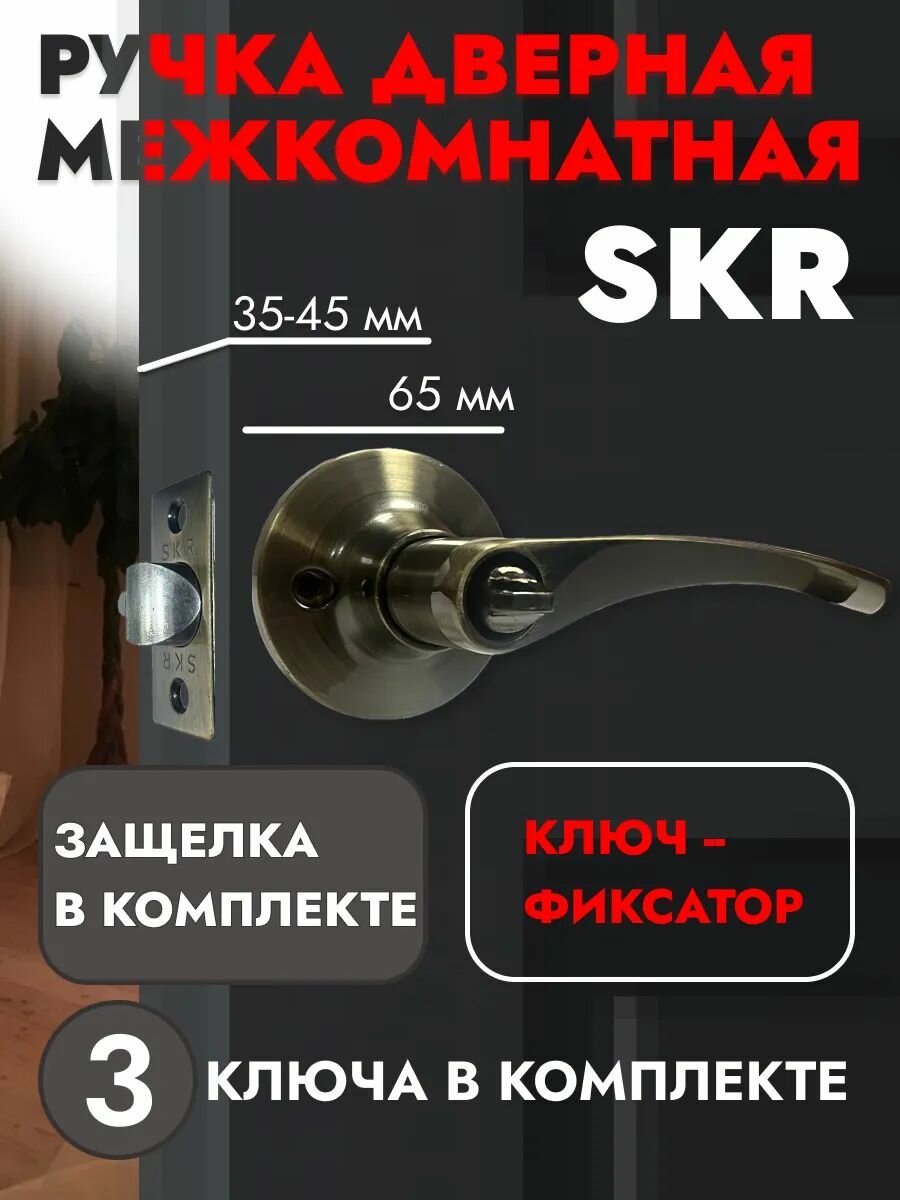 Ручка дверная межкомнатная с защелкой, фиксатор, цвет: бронза