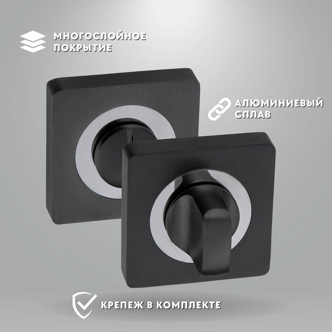 Ручка дверная межкомнатная +защелка, квадратная розетка, цвет черный