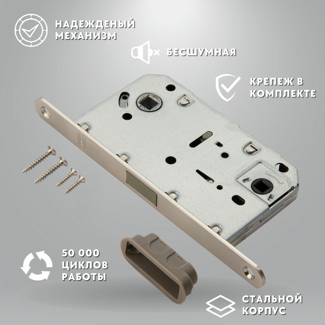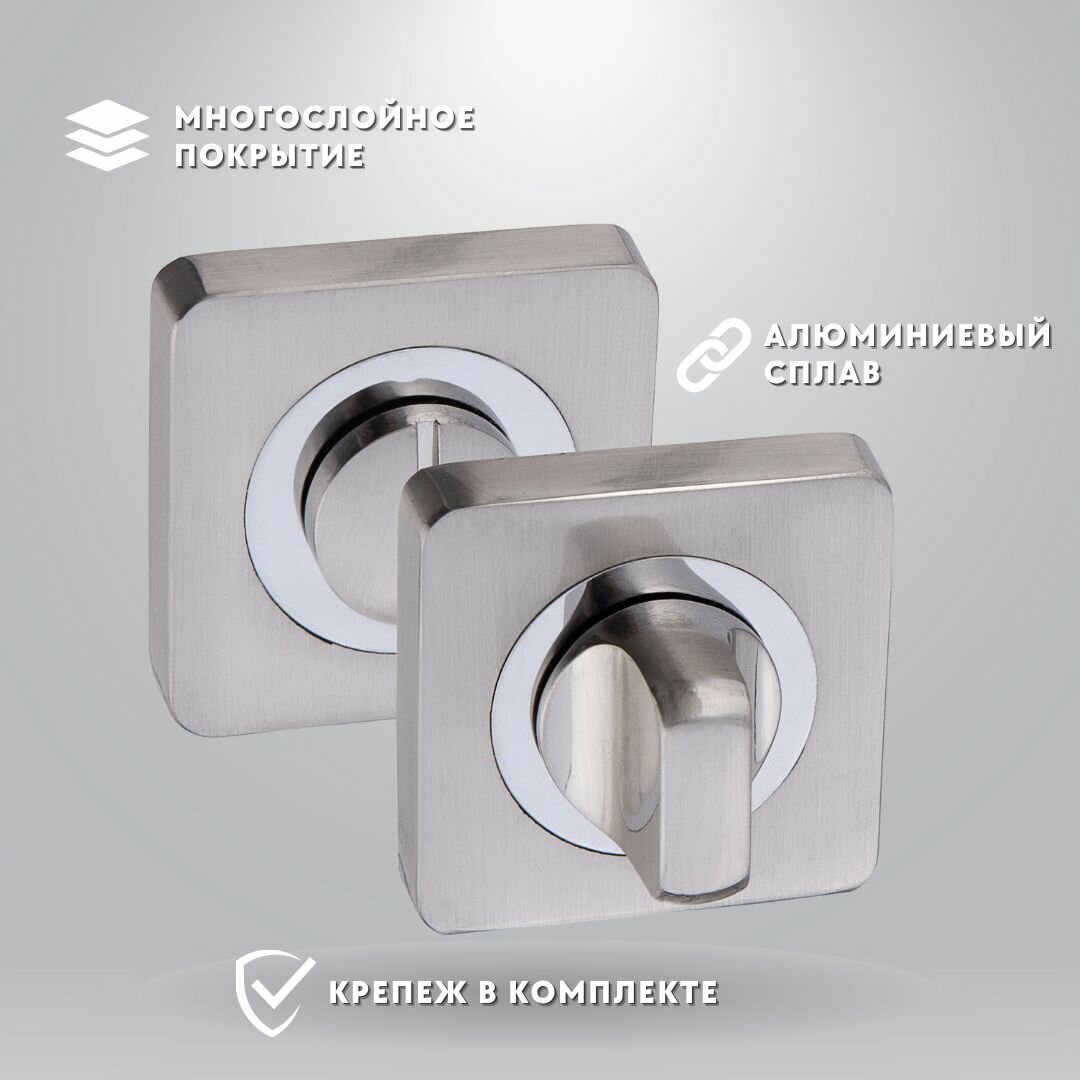 Ручка дверная межкомнатная, с защелкой +завертка , цвет никель, квадратные, комплект