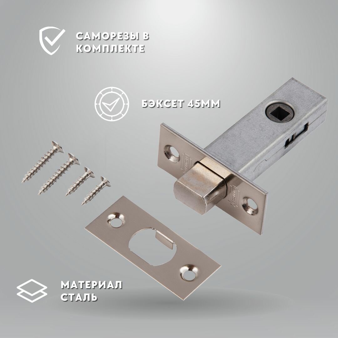 Ручка дверная межкомнатная, с защелкой +завертка , цвет никель, квадратные, комплект