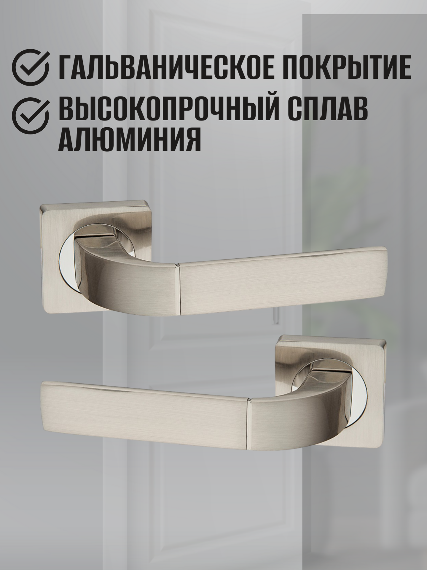 Купить Ручка дверная межкомнатная, цвет никель, универсальная, квадратная розетка, комплект