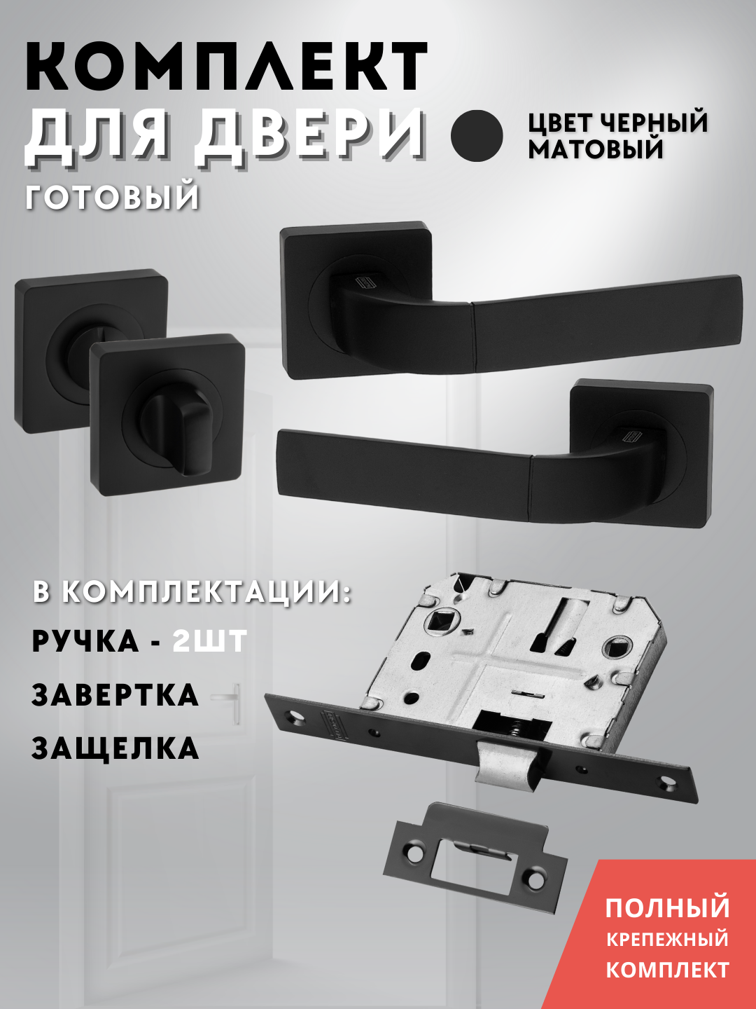 Ручка дверная межкомнатная +защелка, квадратная розетка, цвет черный