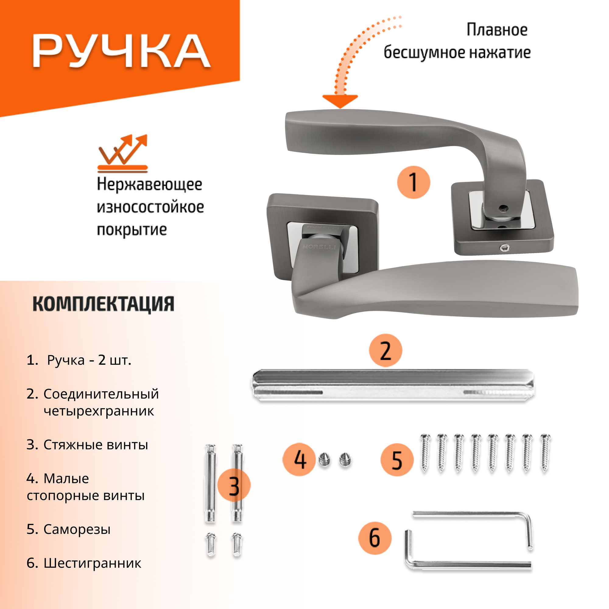 Комплект для межкомнатной двери Morelli ручка MH 45 S55 GR/CP + бесшумный замок + врезные петли / графит-хром