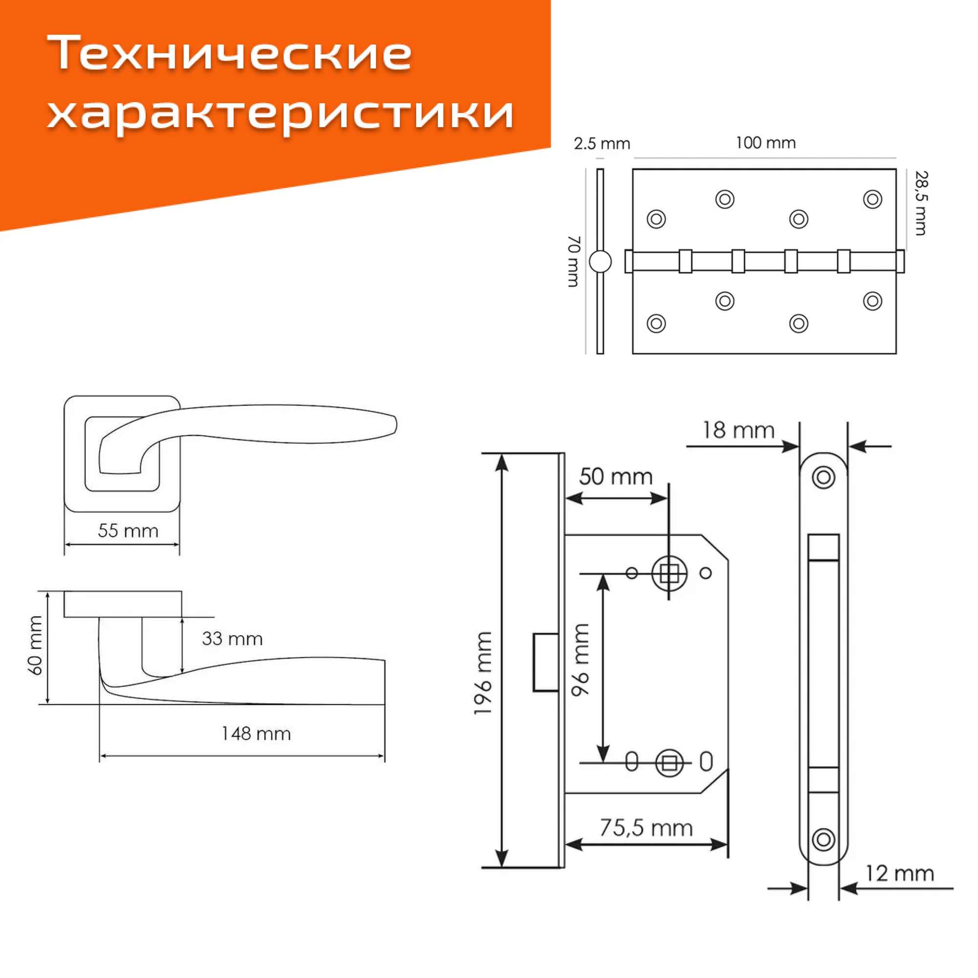 СохранитьКомплект для межкомнатной двери Morelli ручка MH 45 S55 GR/CP + магнитный замок + врезные петли / графит-хром интересное: