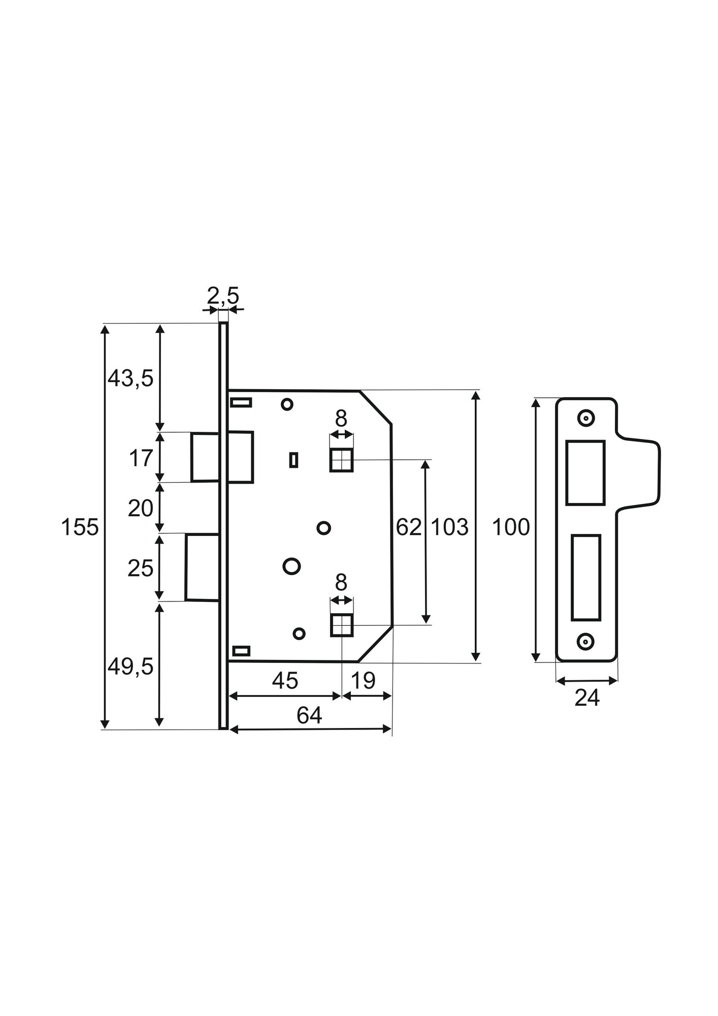 Комплект для межкомнатной двери, Ручка на планке VETTORE 62.323 WC SN/ CP + замок WC 251 SN/CP (Сатин / Хром)