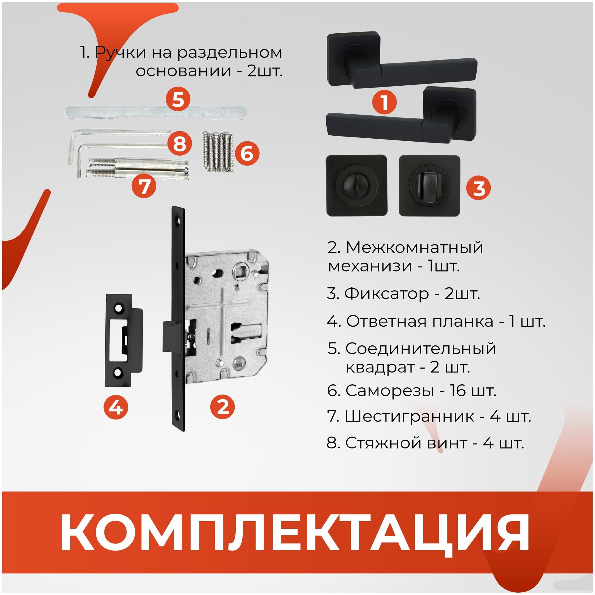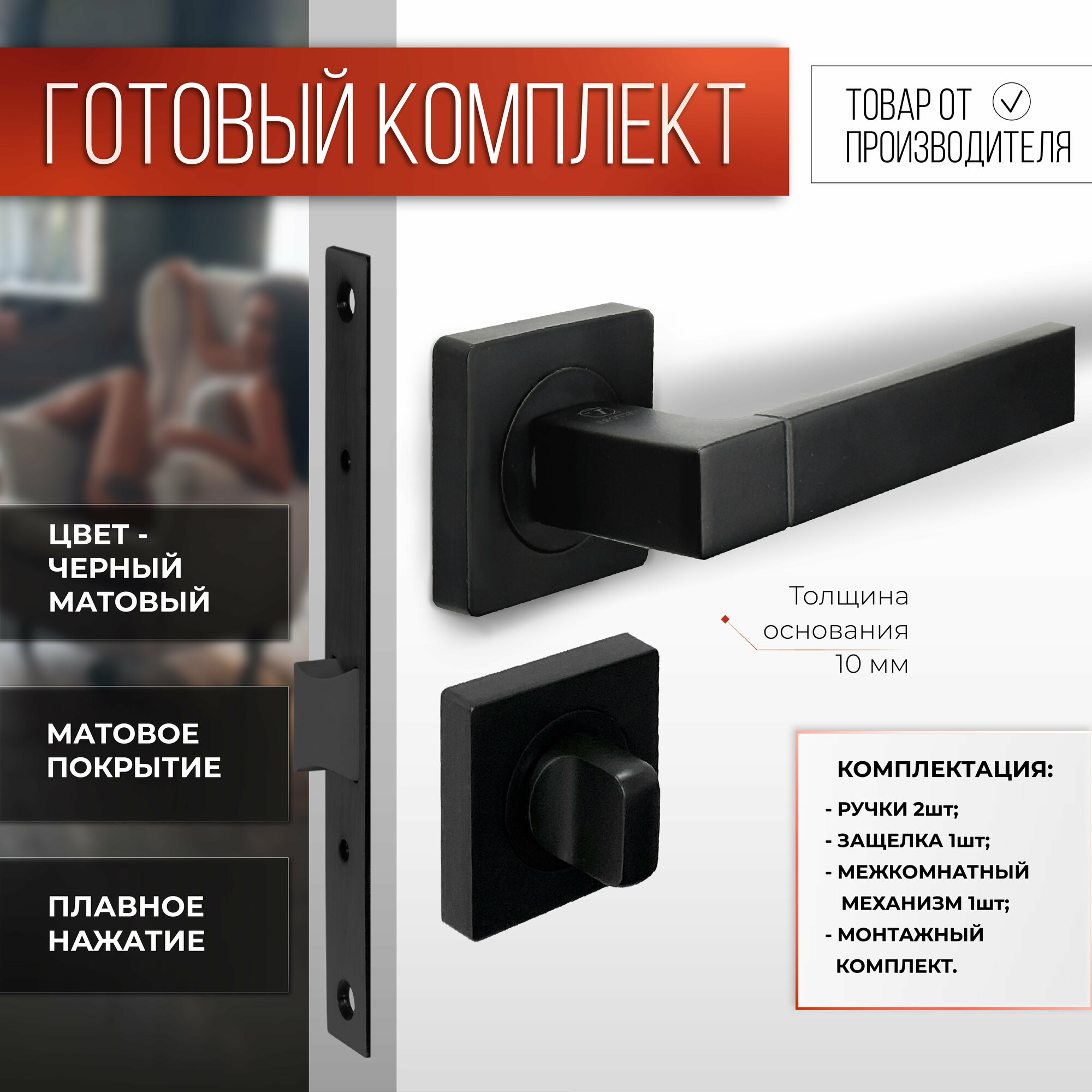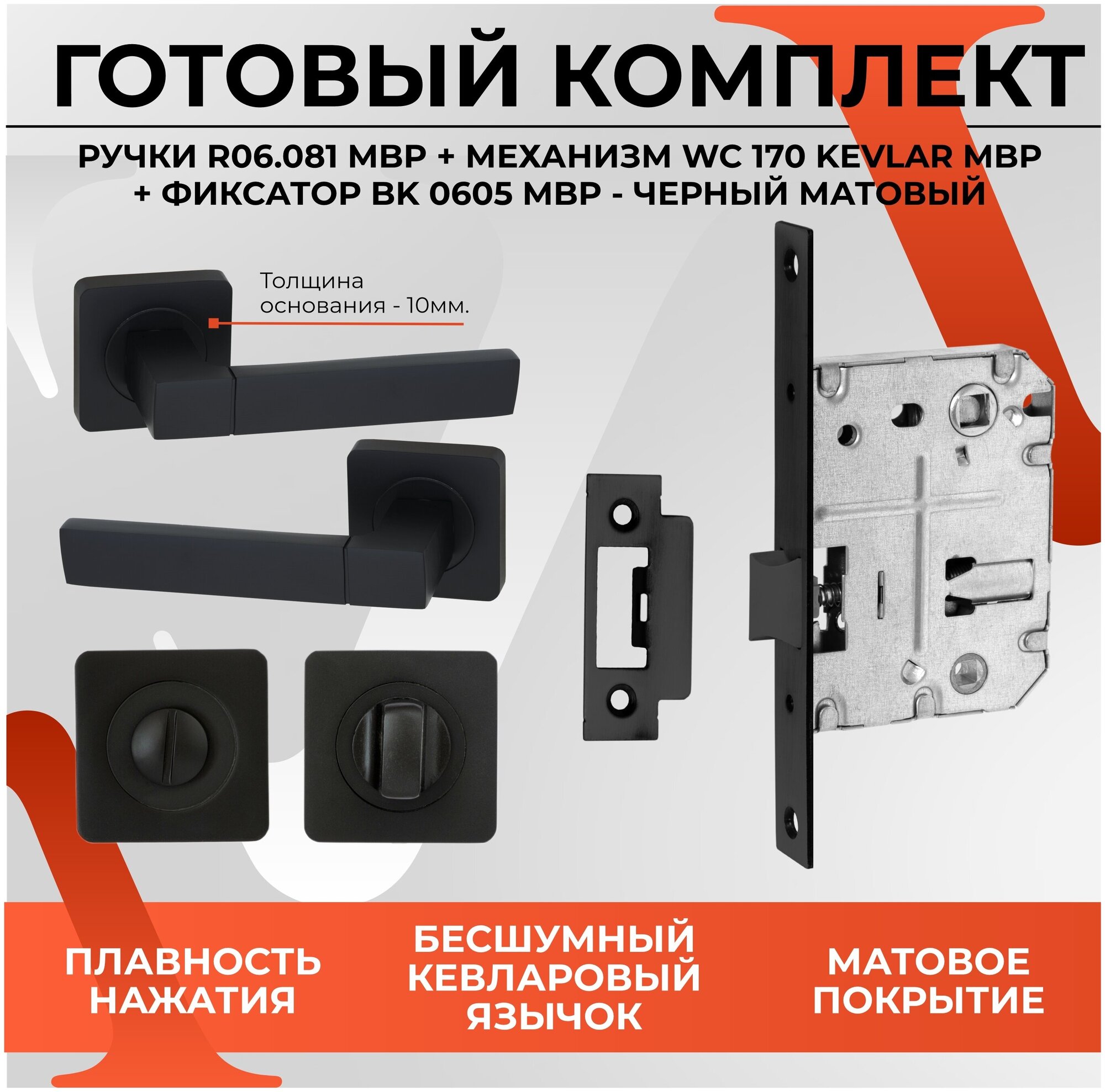Ручка дверная VETTORE R06.081 MBP с фиксатором BK 0605 MBP и межкомнатным механизмом WC 170 kevlar MBP Черный матовый интересное: