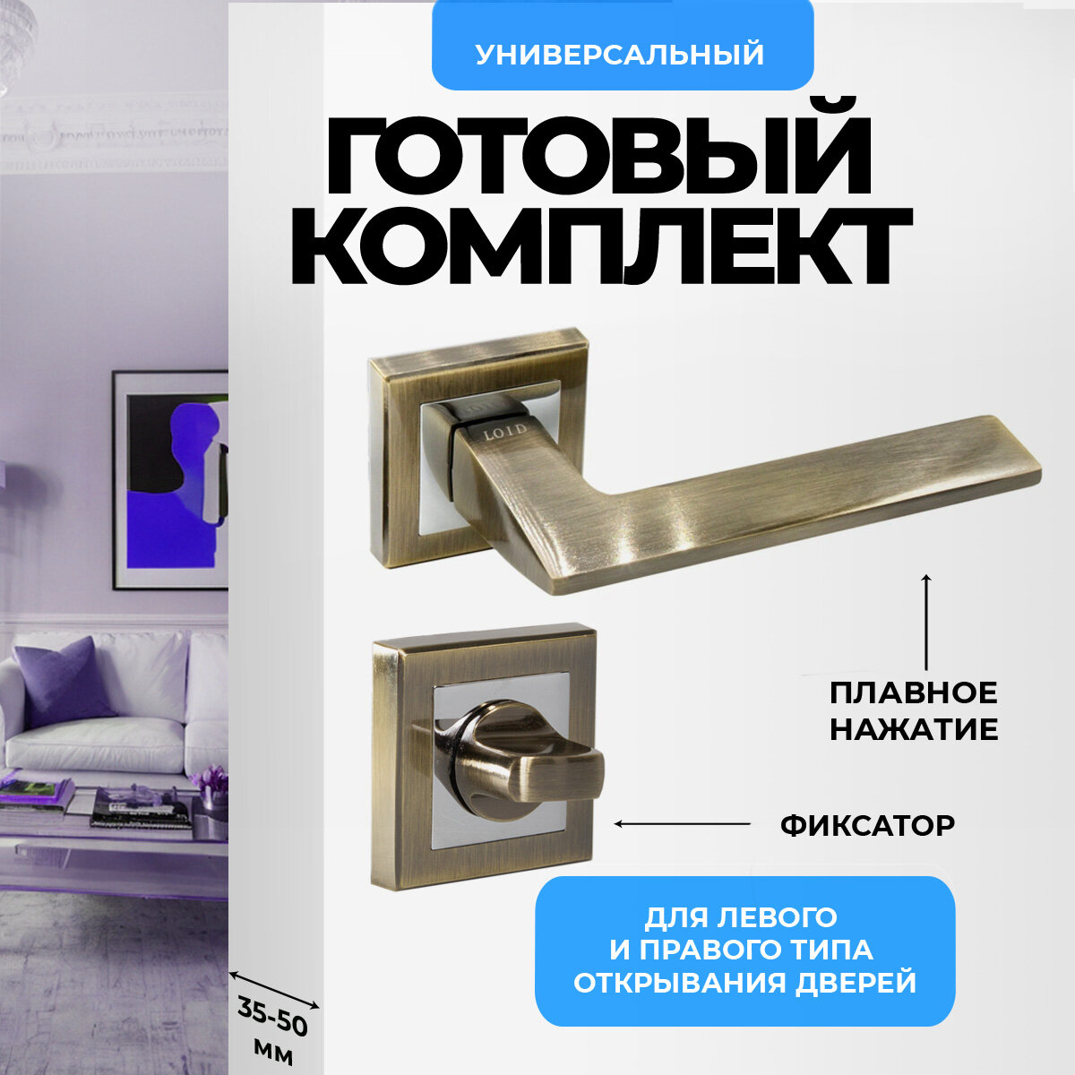 СохранитьРучка дверная межкомнатная, поворотная, нажимная Loid 400 AB + завертка квадратная AB античная бронза интересное:
