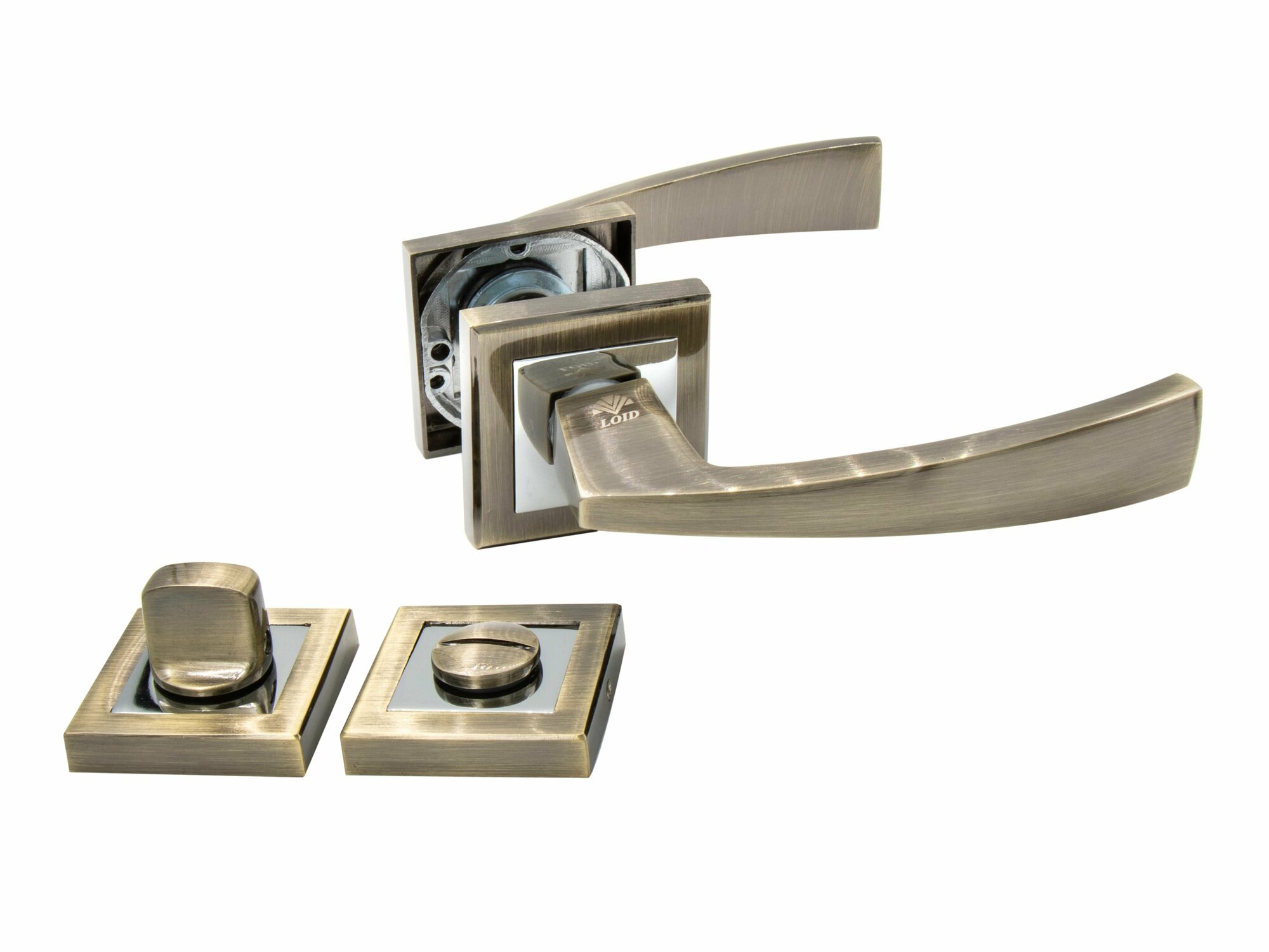 Ручка дверная межкомнатная, поворотная, нажимная Loid 400 AB + завертка квадратная AB античная бронза