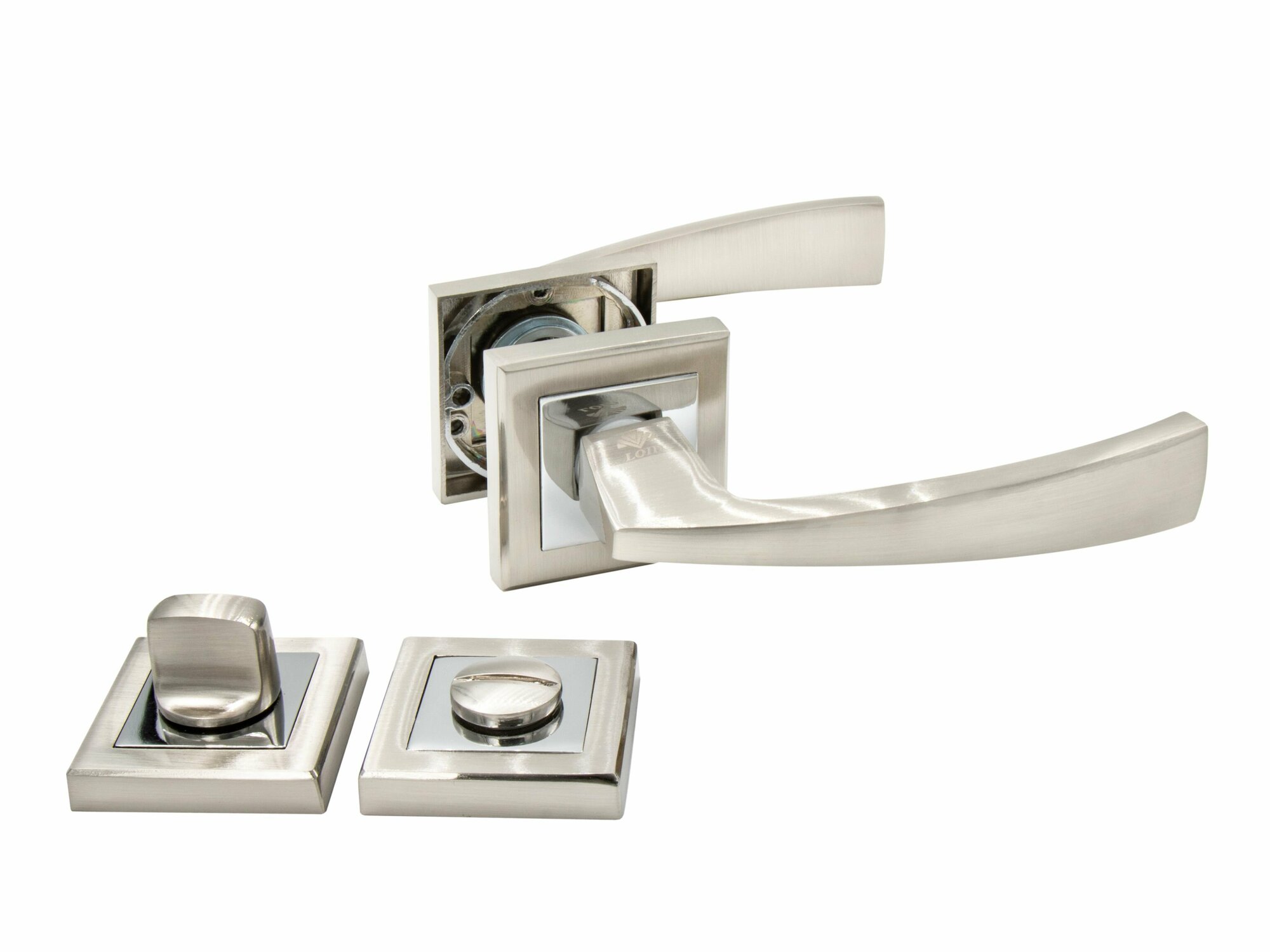 Ручка дверная межкомнатная, поворотная, нажимная Loid 435 SN с фиксатором квадратная SN/CP матовый хром/хром
