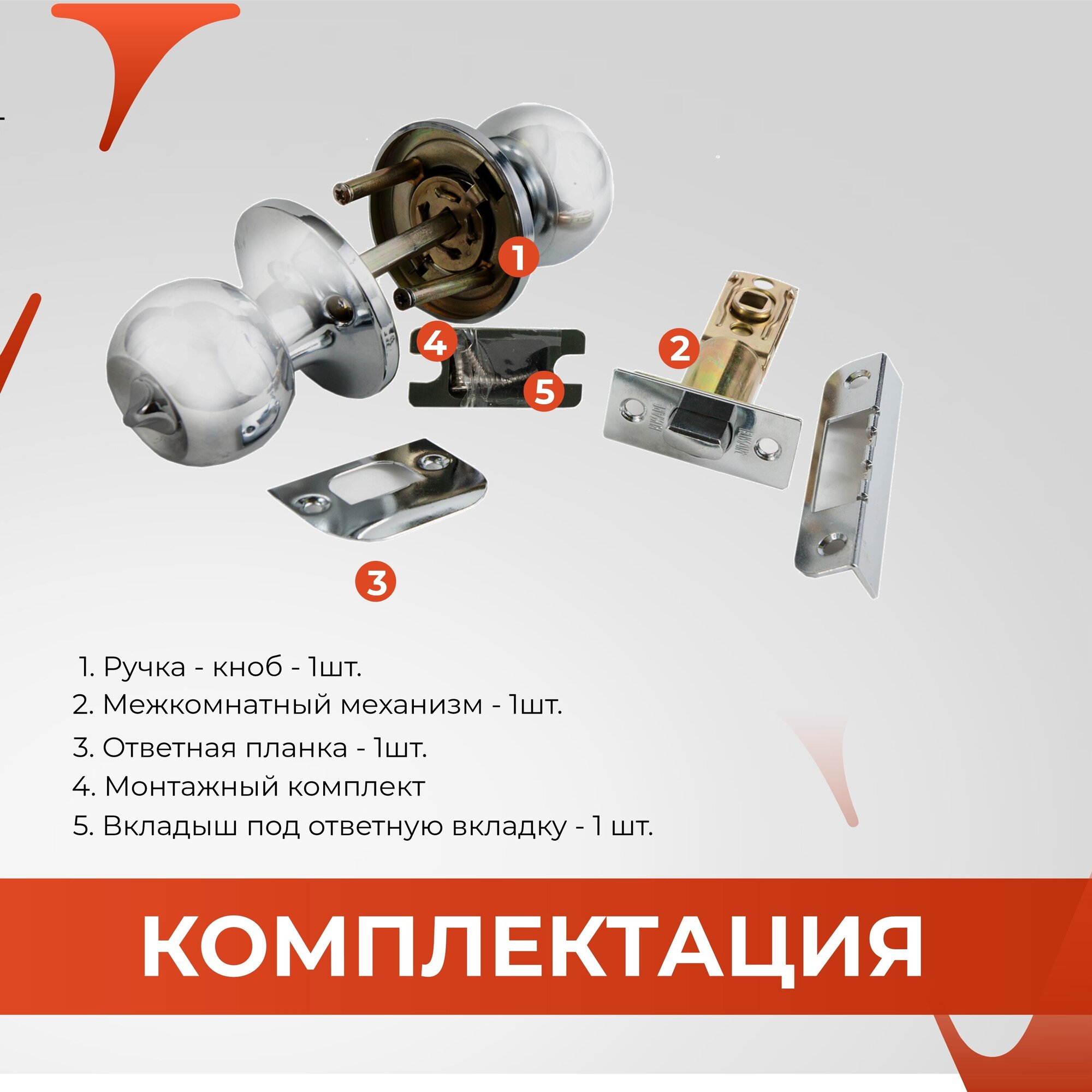 Ручка дверная межкомнатная медь с защелкой и заверткой без ключей комплект