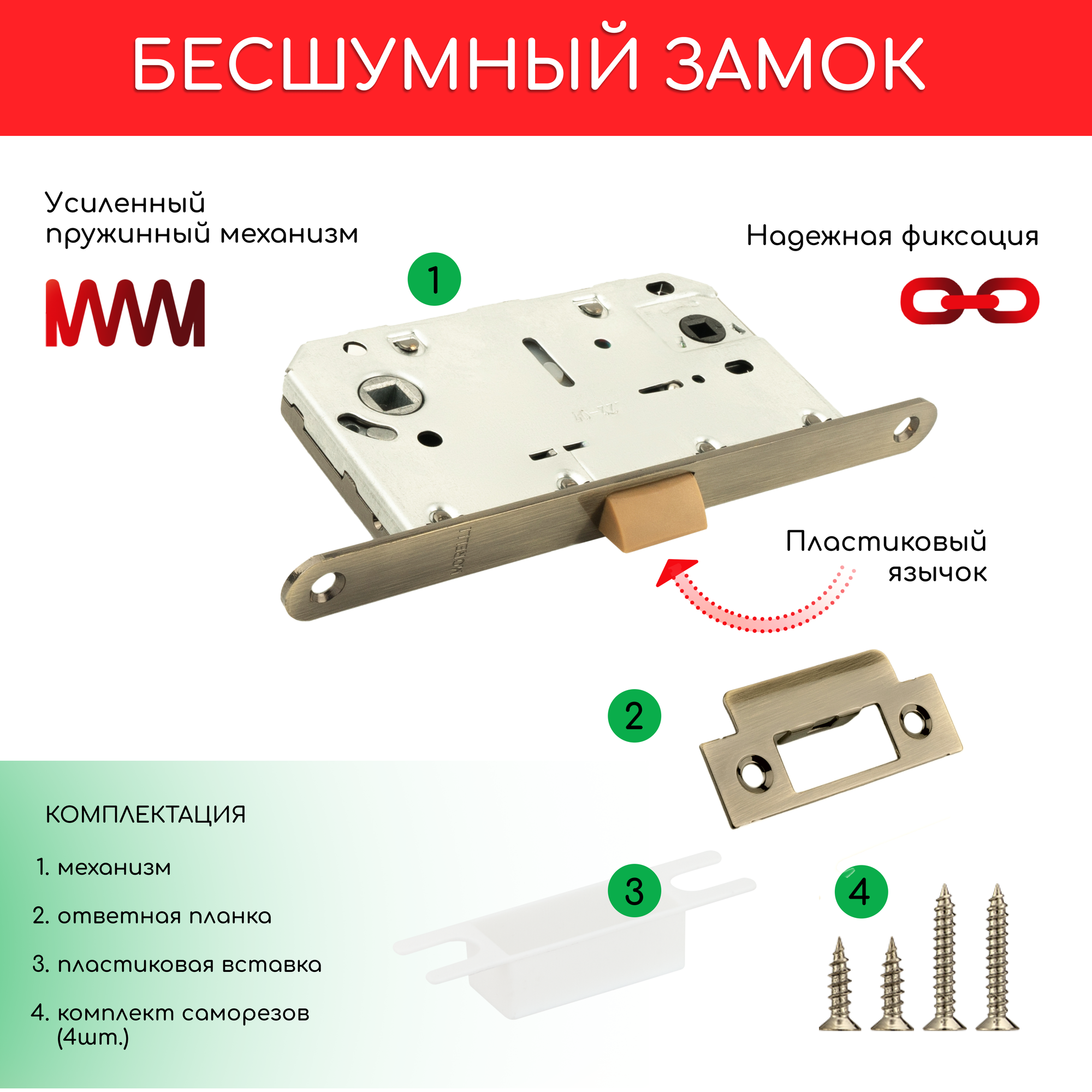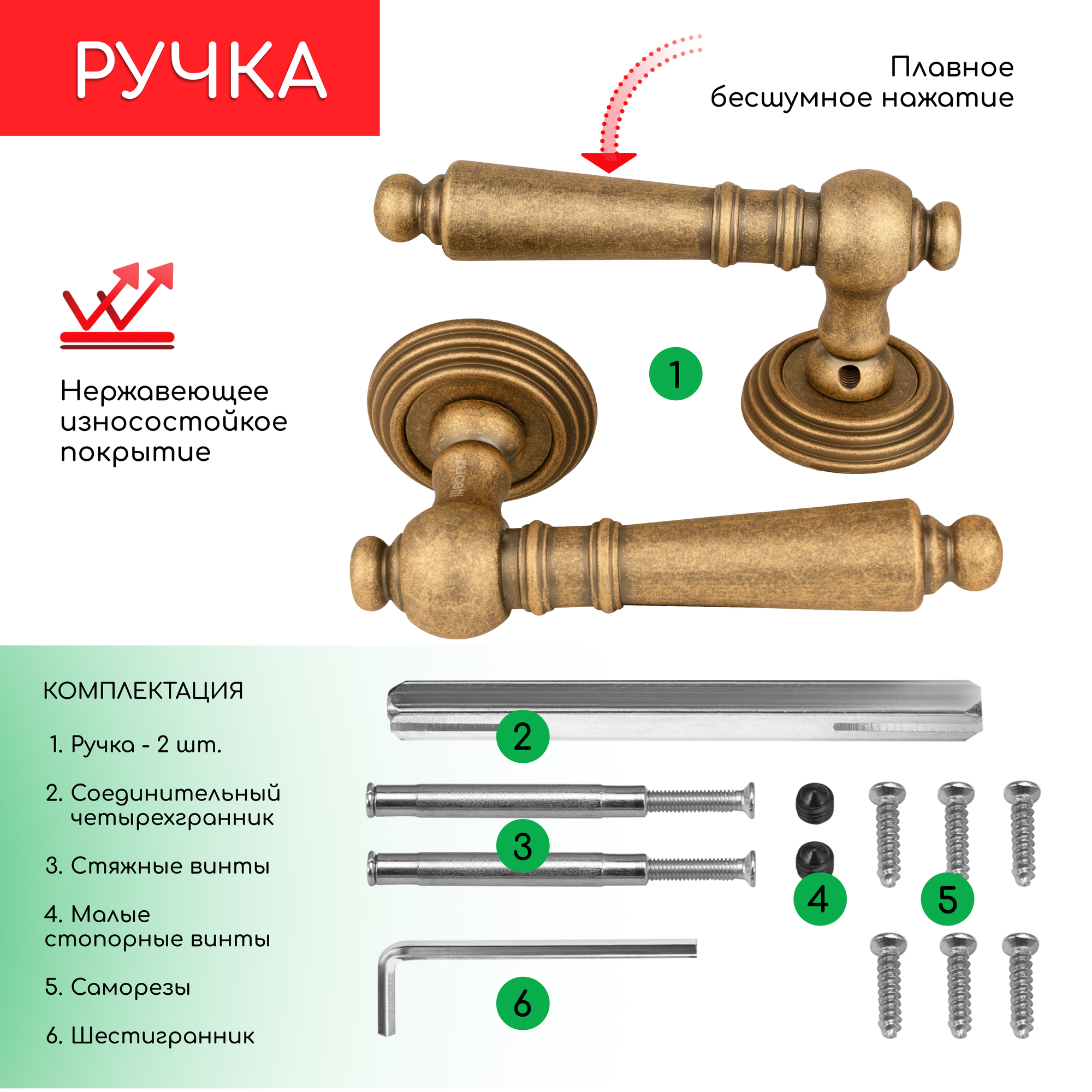 Комплект для межкомнатной двери Rucetti ручки RAP Cl 8 OMB + фиксатор + бесшумный замок / старая матовая бронза