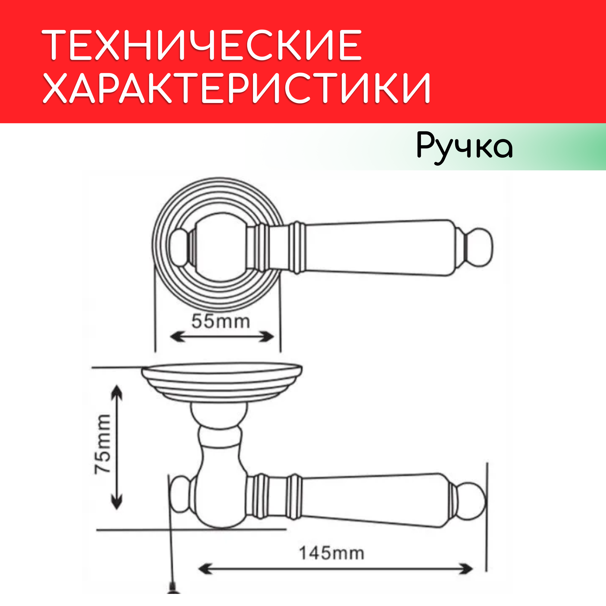 Ручка дверная межкомнатная медь с защелкой и заверткой без ключей комплект
