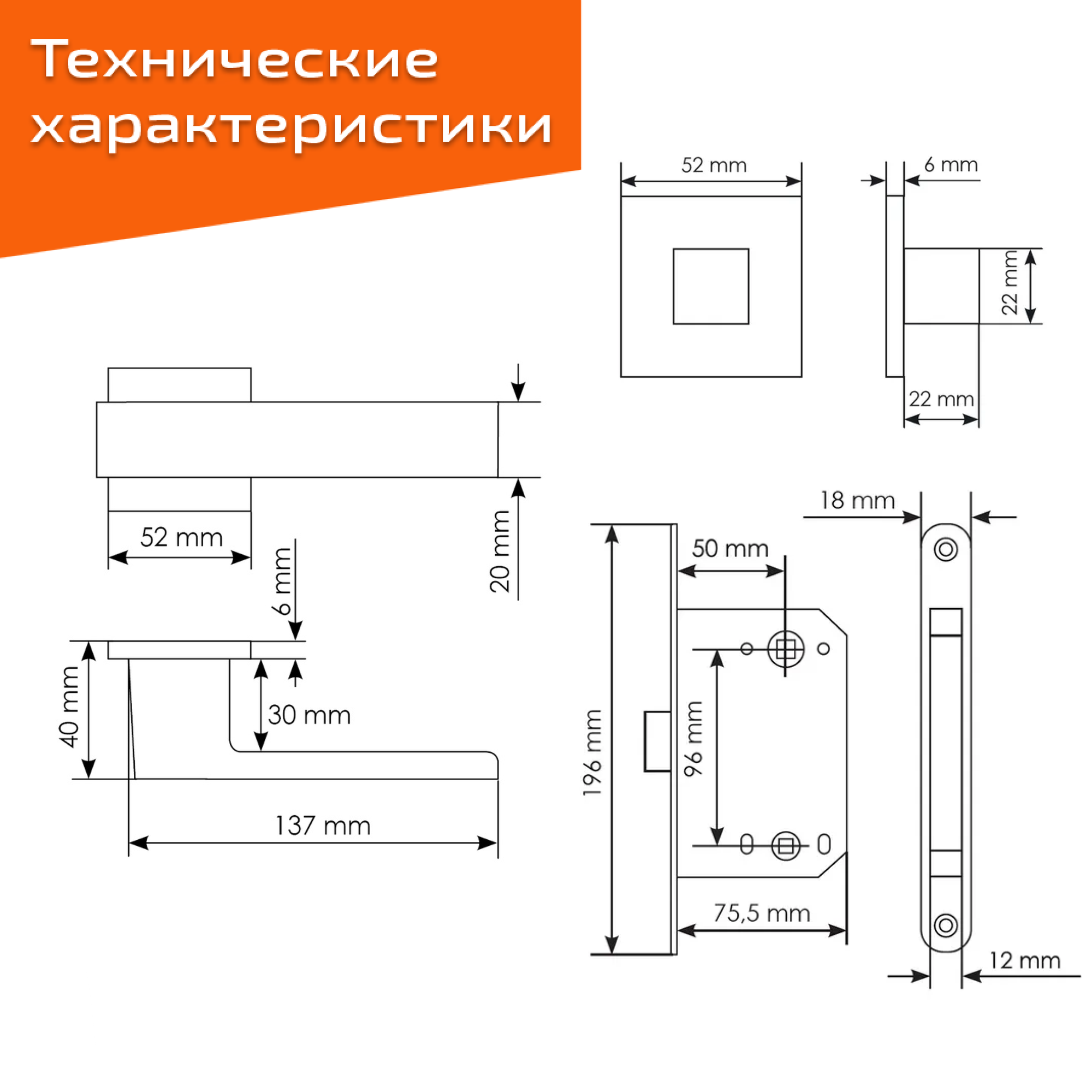 Комплект для межкомнатной двери Morelli / Дверная ручка MH 56 S6 BL + магнитный замок / черный матовый