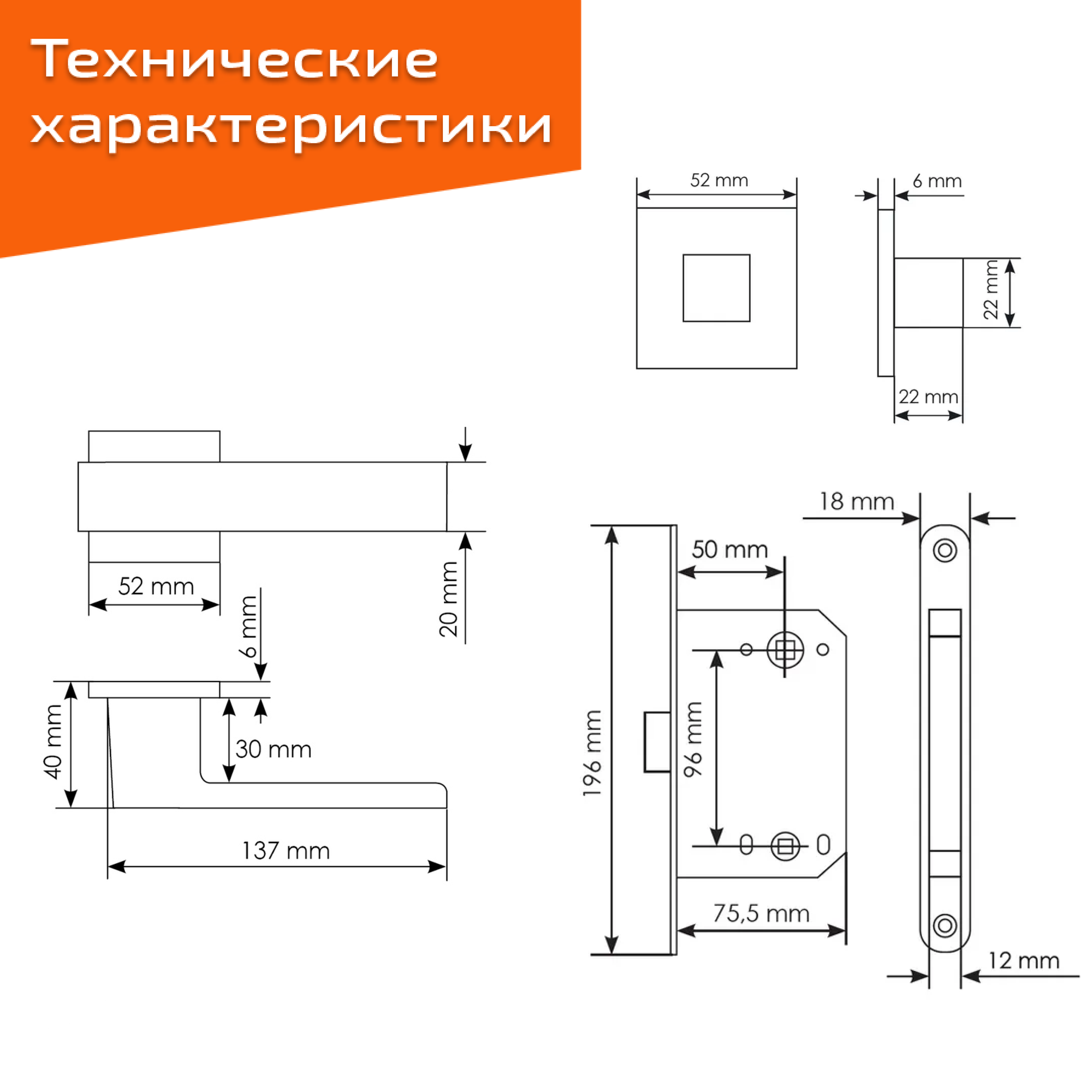 Комплект для межкомнатной двери Morelli / Дверная ручка MH 56 S6 BL + бесшумный замок + врезные петли / черный матовый