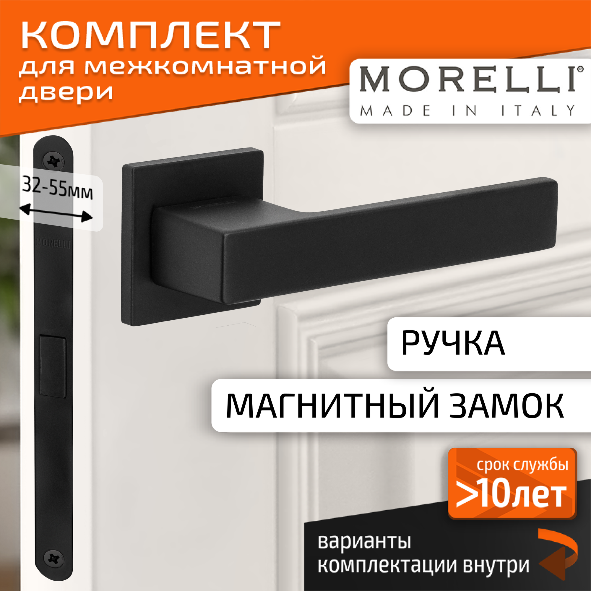 Комплект для межкомнатной двери Morelli / Дверная ручка MH 56 S6 BL + бесшумный замок / черный матовый
