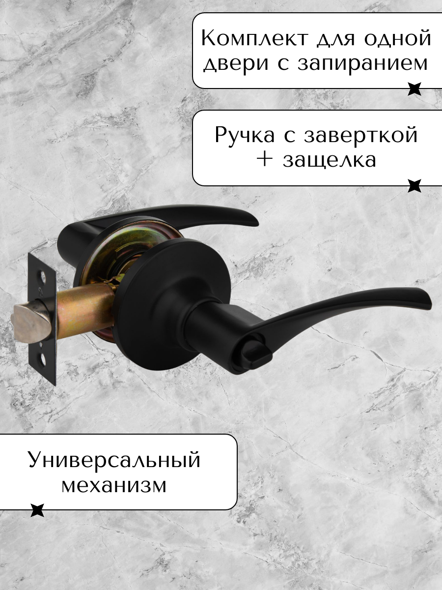 Ручка дверная межкомнатная черная с защелкой и заверткой без ключей, комплект интересное: