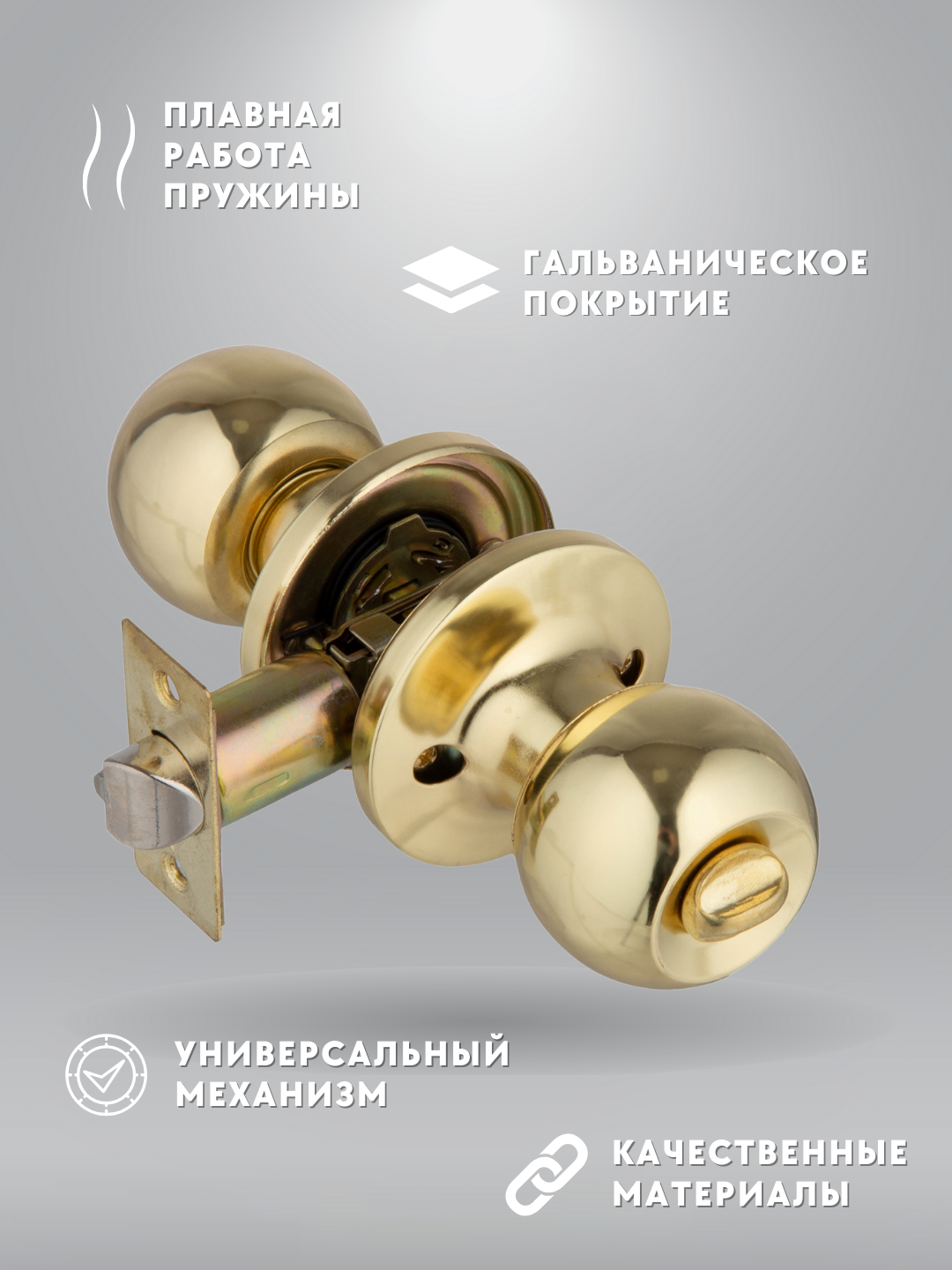 СохранитьРучка дверная межкомнатная кноб с защелкой, фиксатор без ключей , золото блестящее, комплект 607 PB BK интересное: