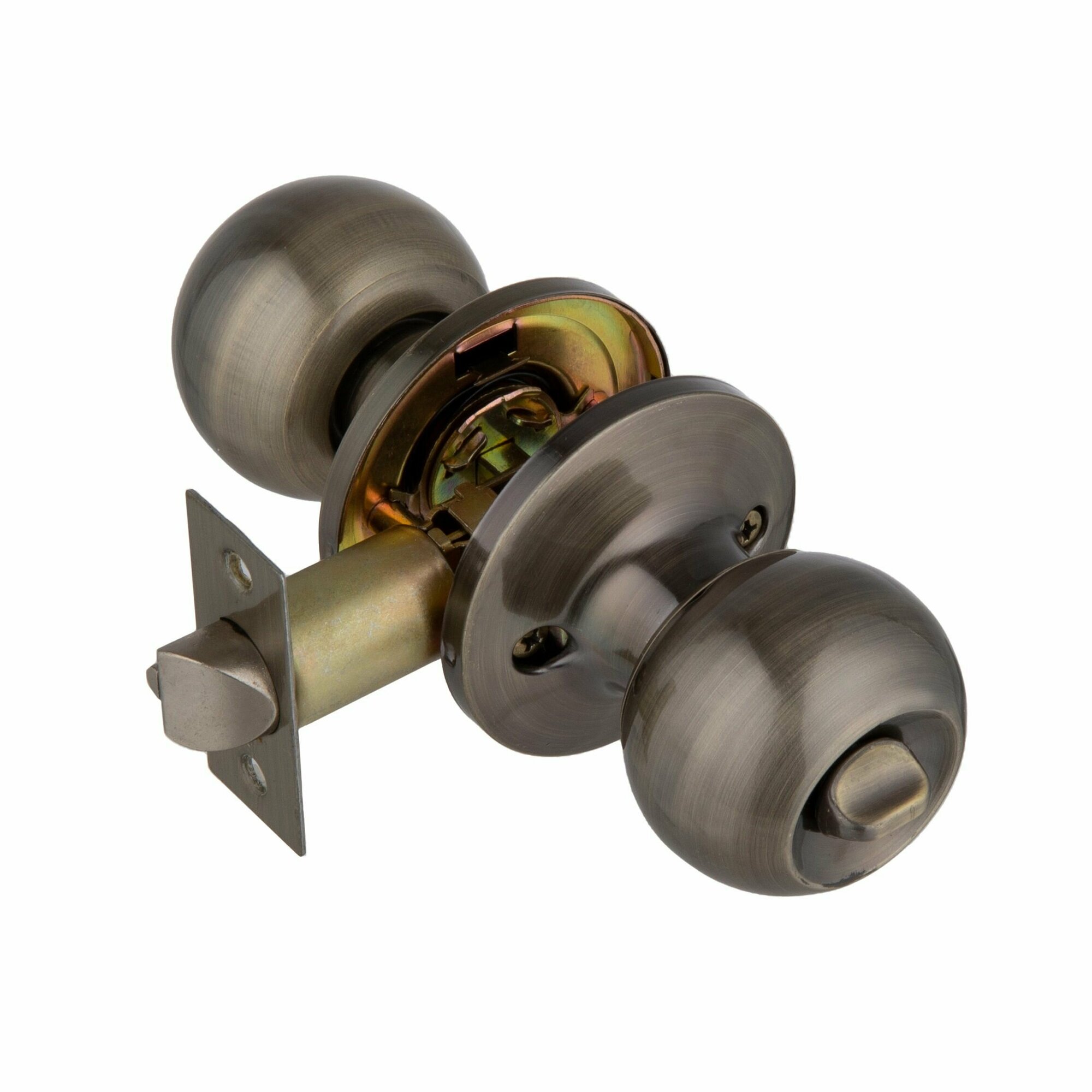 Ручка дверная межкомнатная кноб с защелкой, фиксатор без ключей, медь, комплект 607 AC BK