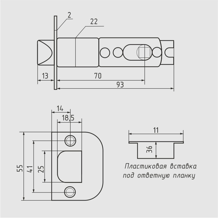 Защелка дверная "Чибис" 3067 GR-ЕТ кноб (серый графит) ключ/фиксатор